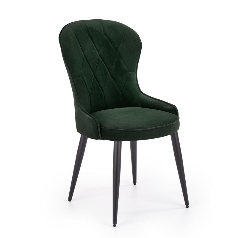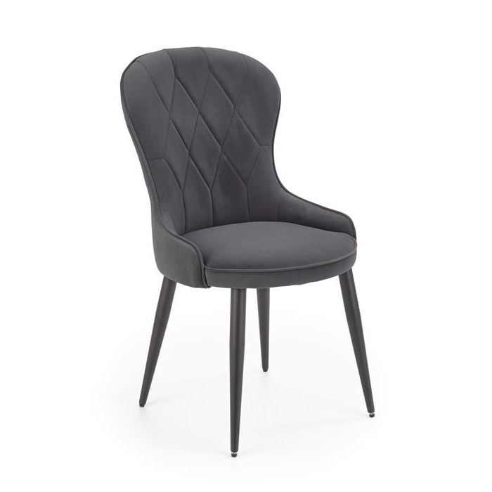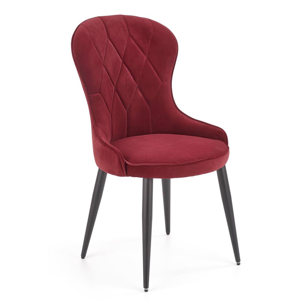 Красив трапезен стол с плюшена дамаска на ромбове и метални крака от праховобоядисана стомана.