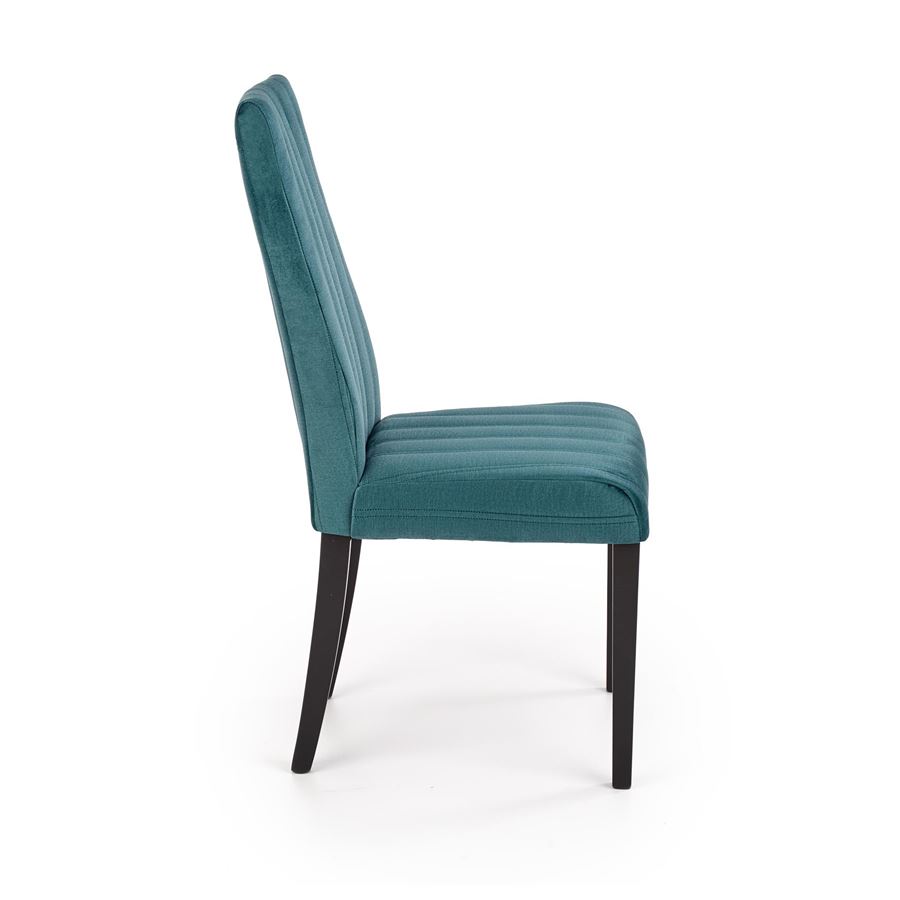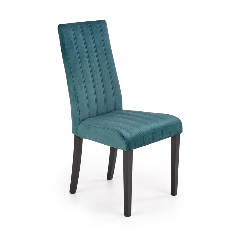 Елегантен трапезен стол с фина плюшена дамаска и черни крачета от масивно буково дърво, подходящ за помещения, решени в модерен стил.
