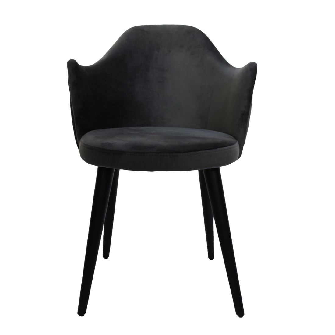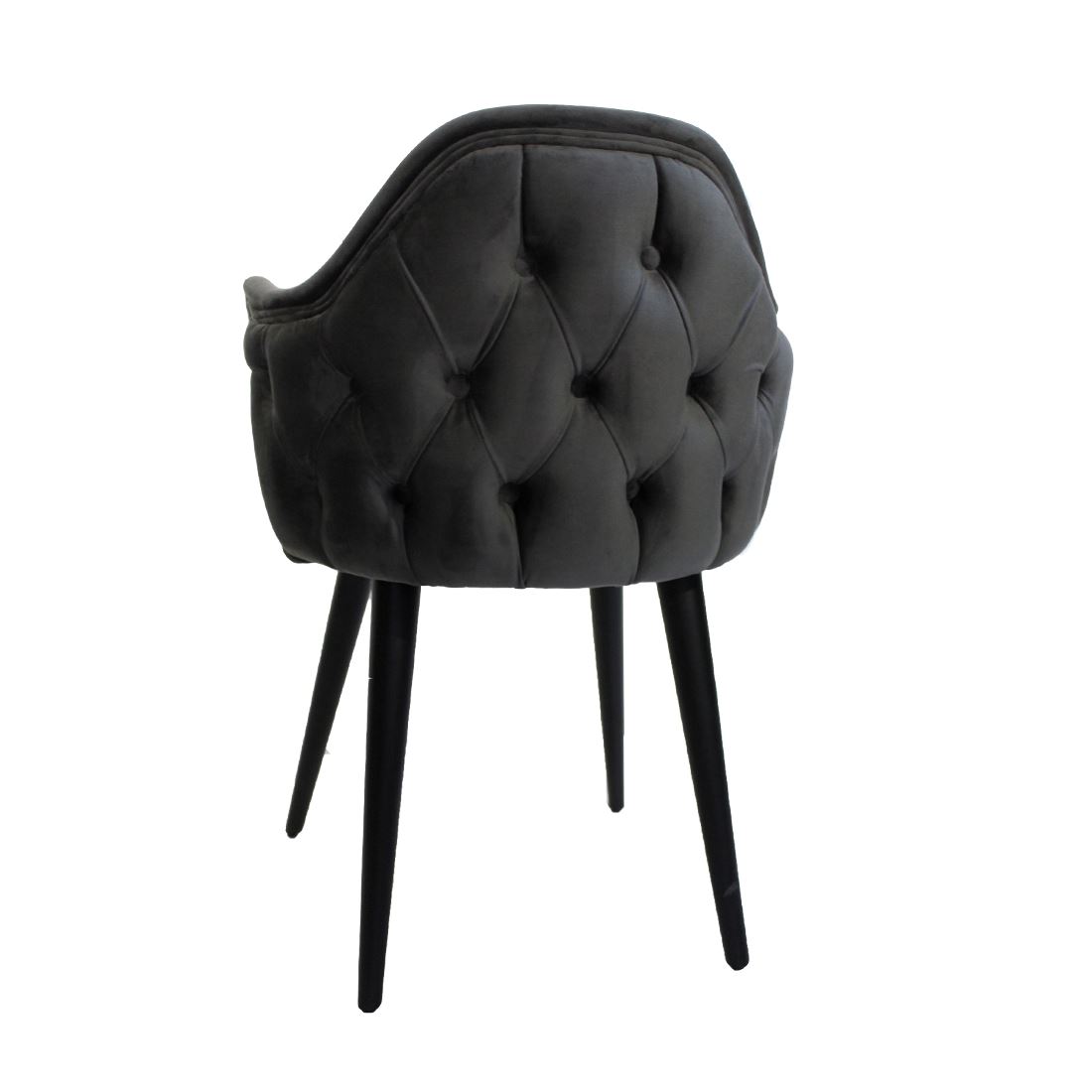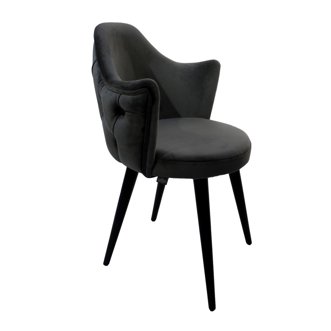 Красив трапезен стол, изработен с мека плюшена дамаска в тъмносив цвят и черни букови крака.