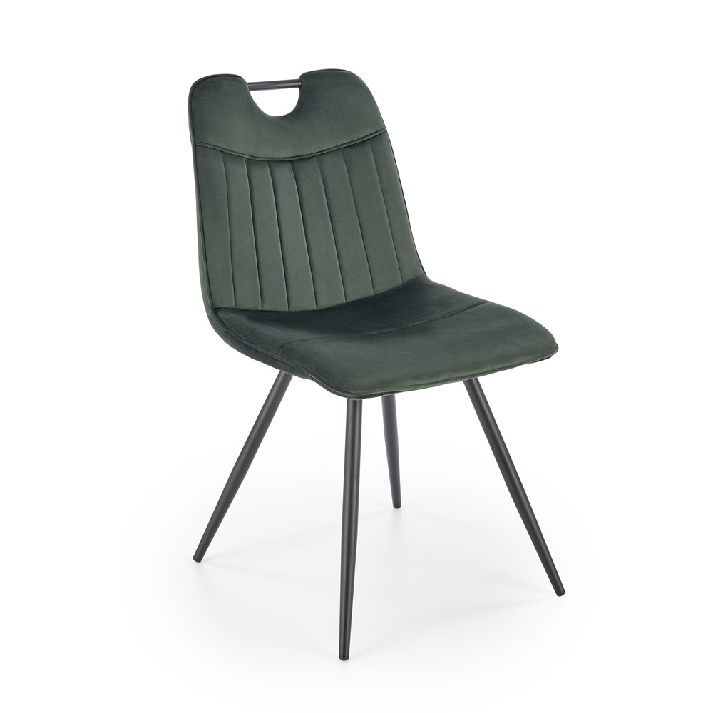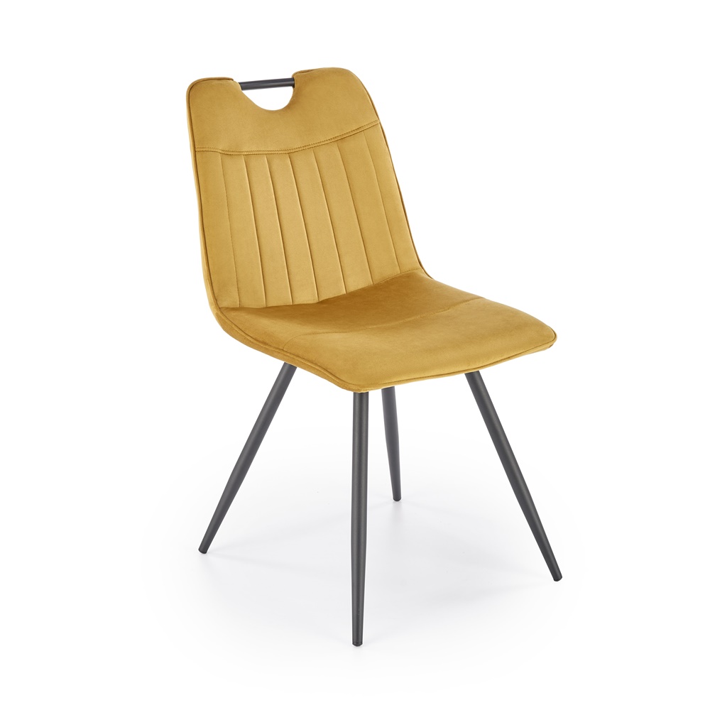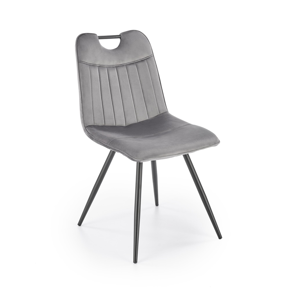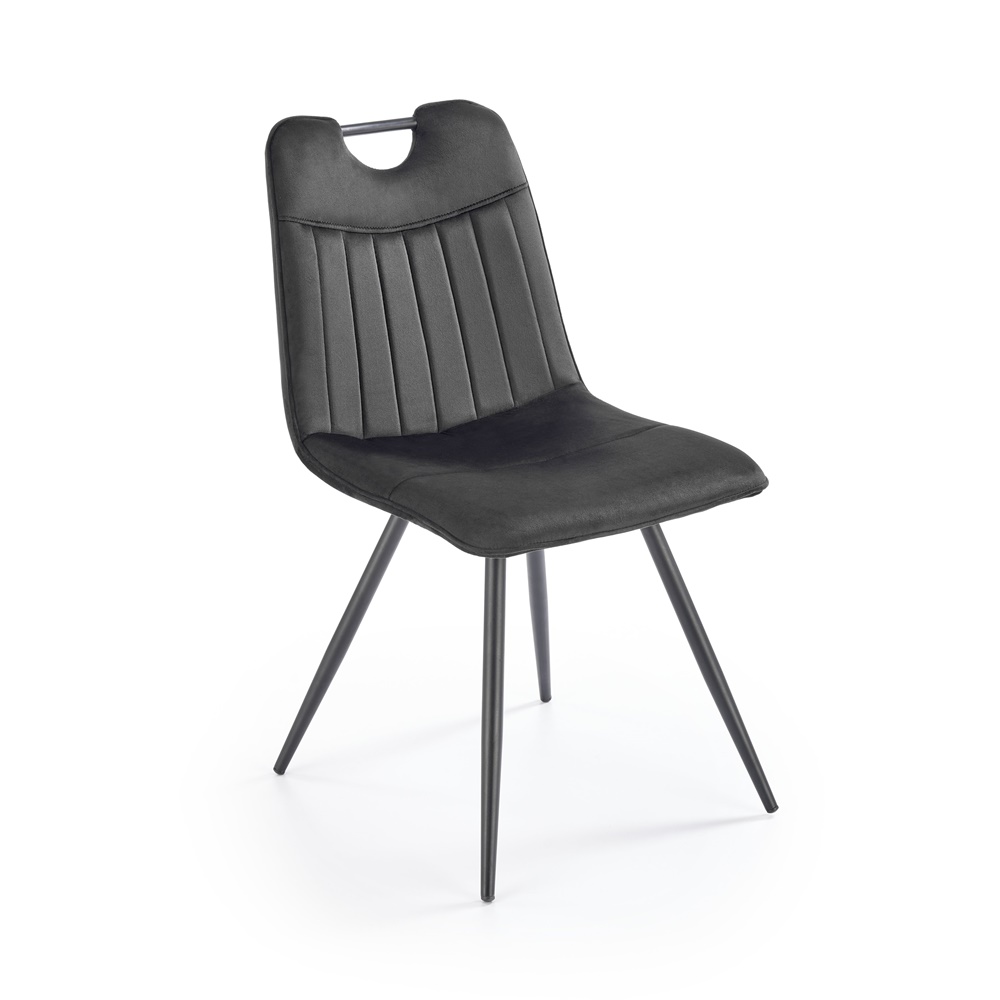 Стилен трапезен стол с дамаска от кадифе и крака от праховобоядисана стомана.