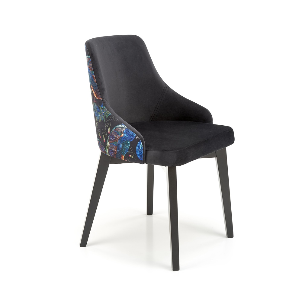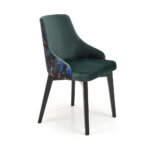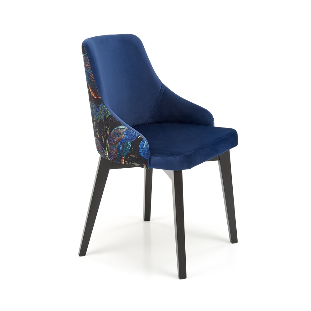 Трапезен стол с двуцветна дамаска – шарен принт на гърба и едноцветен фронт в синьо, черно или тъмнозелено.