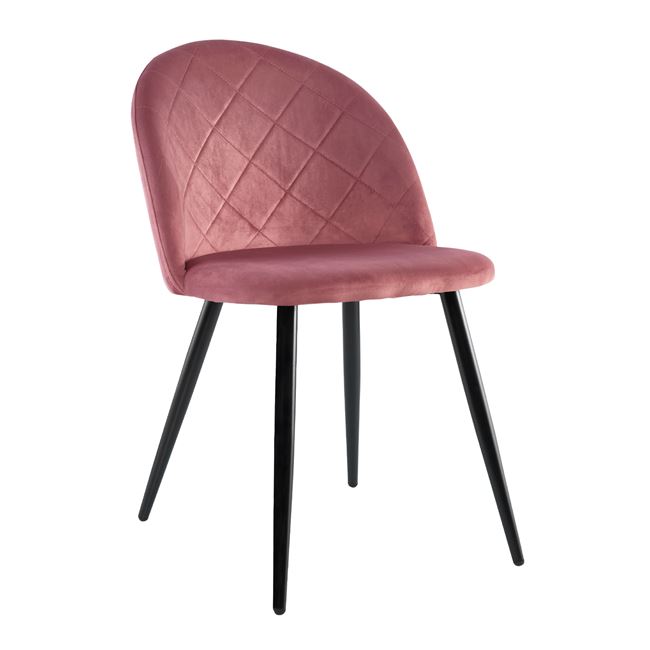 Трапезен стол от кадифе с черни крачета в розов цвят