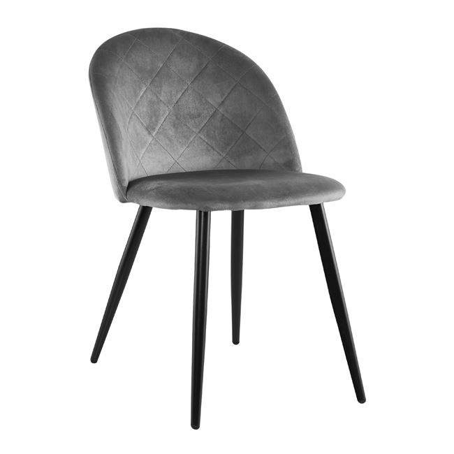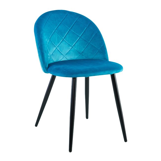 Трапезен стол от кадифе с ромбоиден гръб и черни метални крачета.