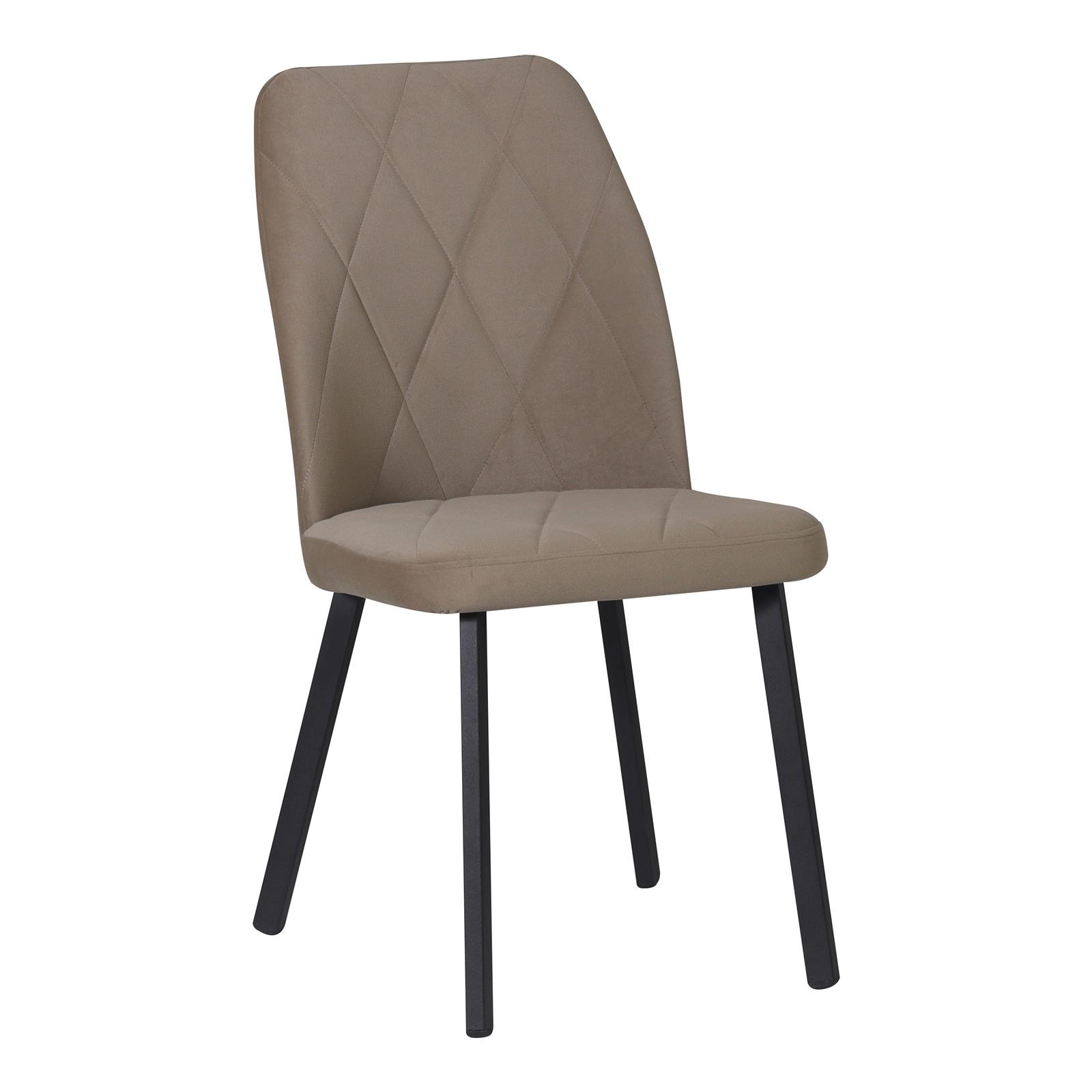 Трапезен стол с класическа визия, изработен от текстилна дамаска и здрави метални крака, съчетаващ удобство и стил за всяка трапезария.
