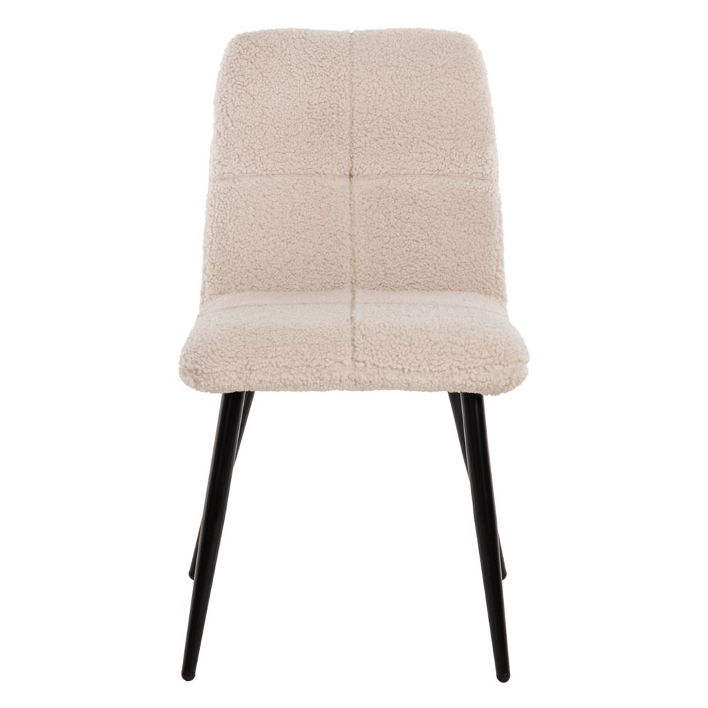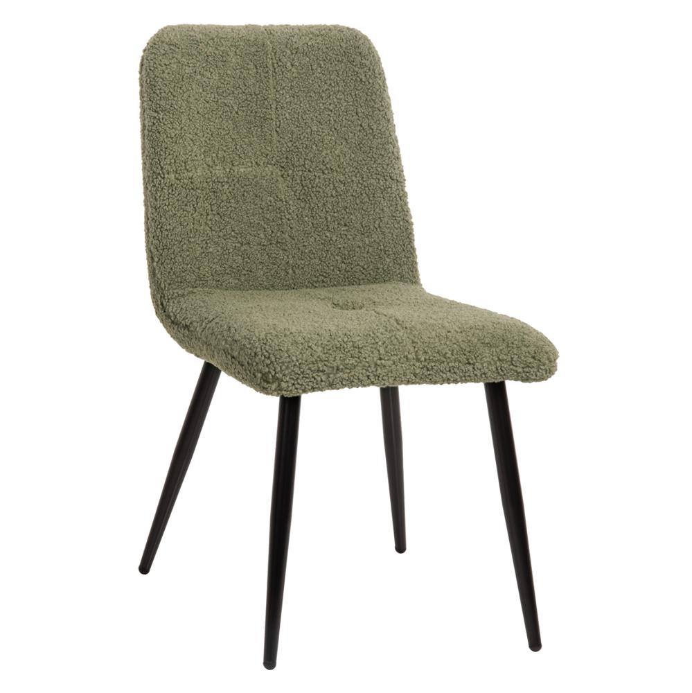 Трапезен стол с класическа визия, изработен с черни метални крака и текстилна дамаска от букле в три елегнатни цвята: сив, зелен и екрю.