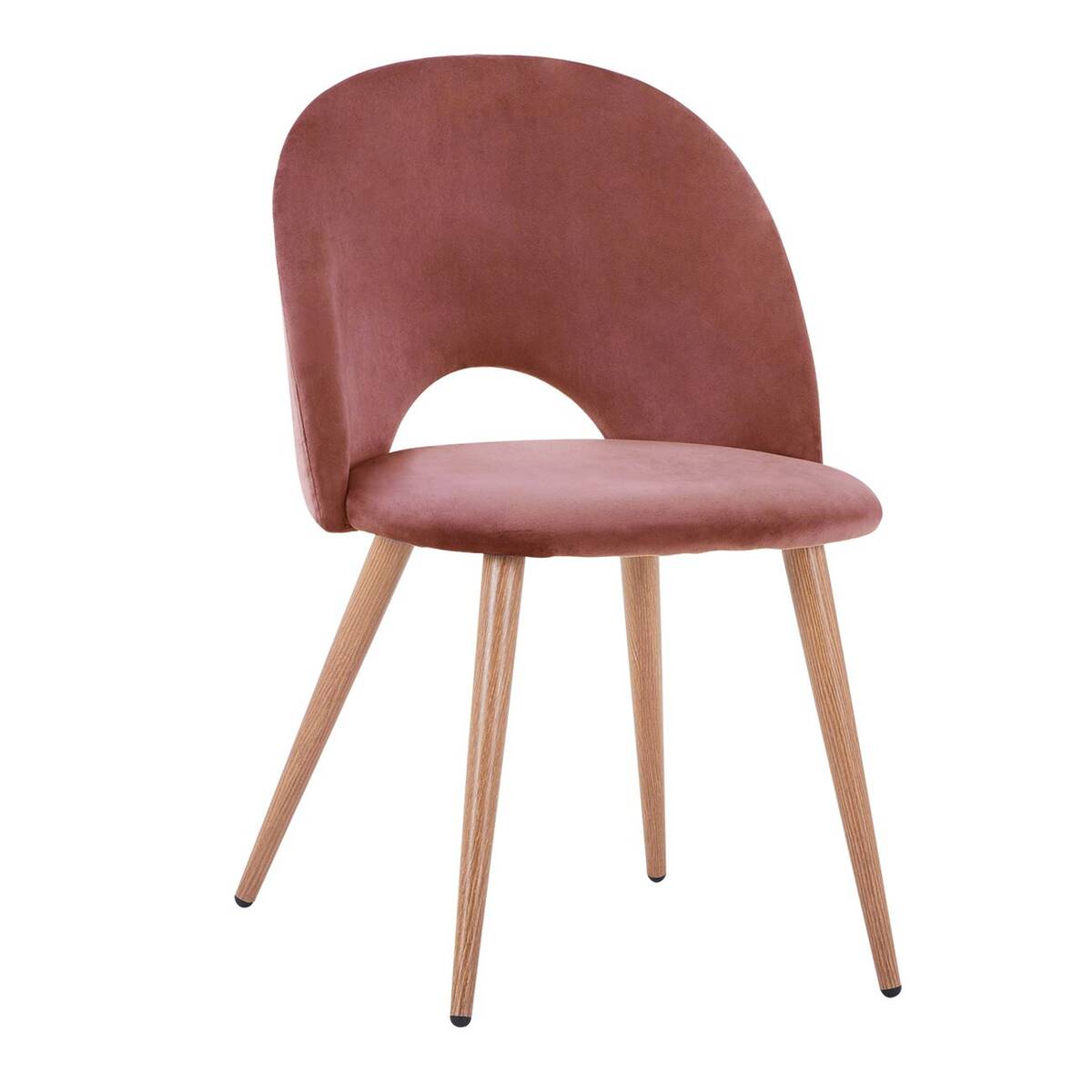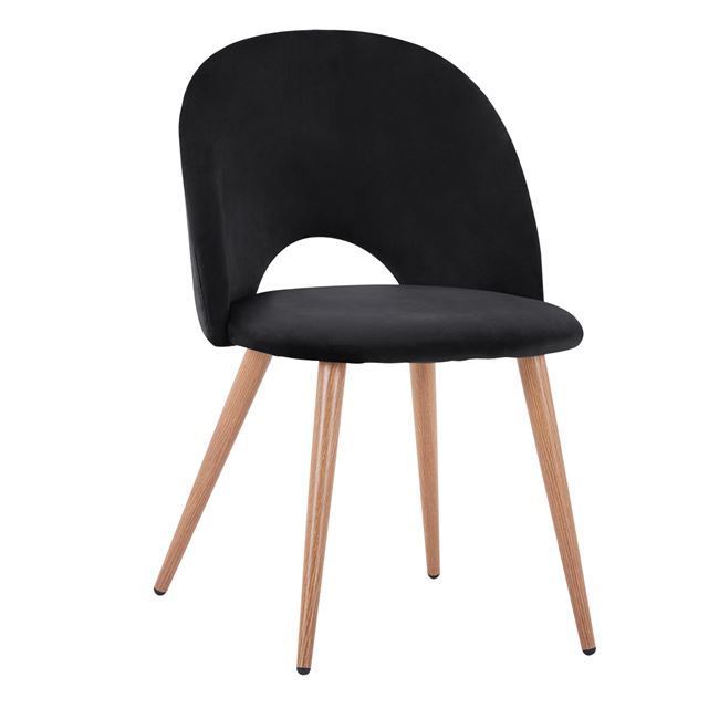 Стилен трапезен стол с мека дамаска и метални крака в натурален дървесен нюанс, предлагащ се в четири красиви цвята – тюркоаз, сив, розов, черен.