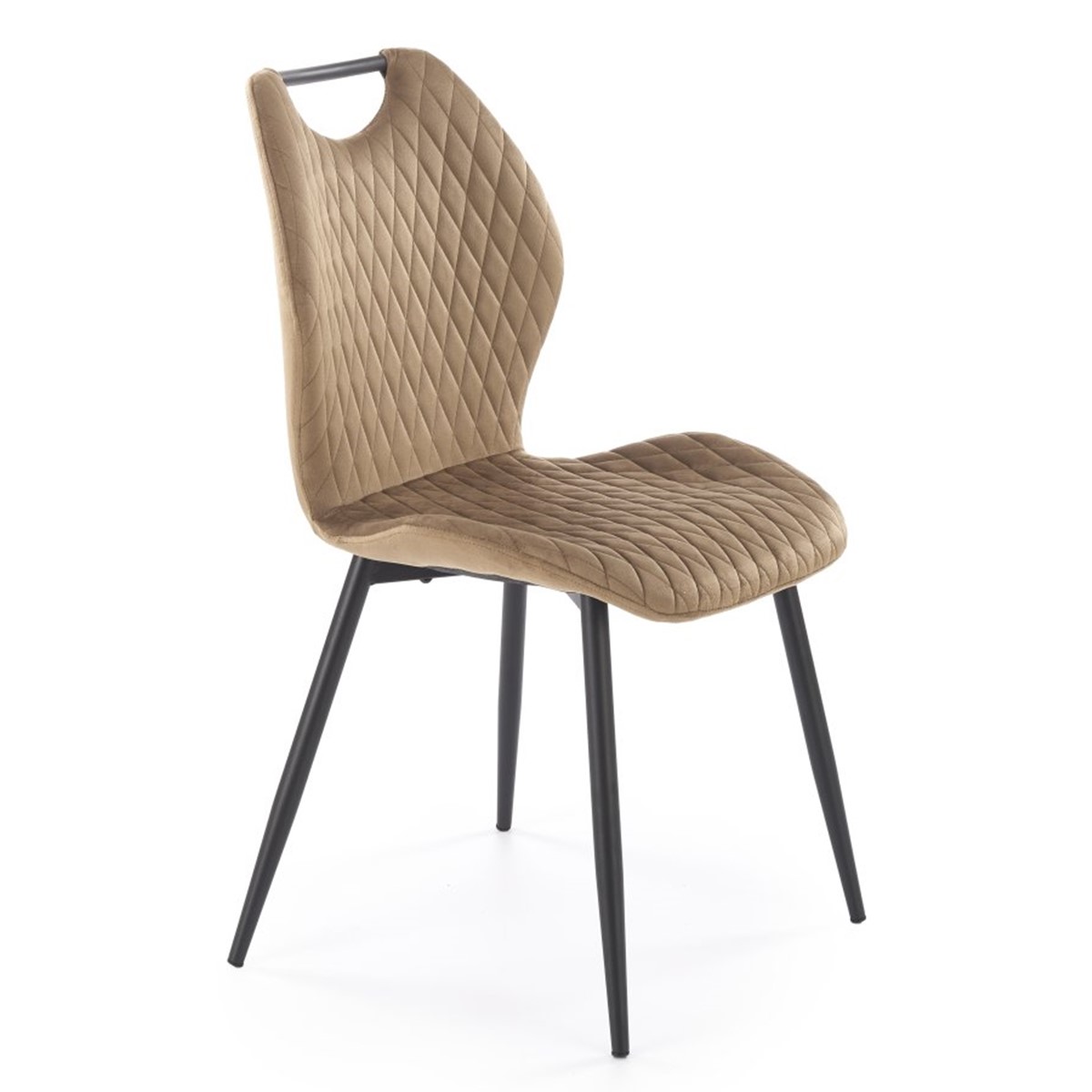 Практичен трапезен стол с метален акцент – дръжка на облегалката.