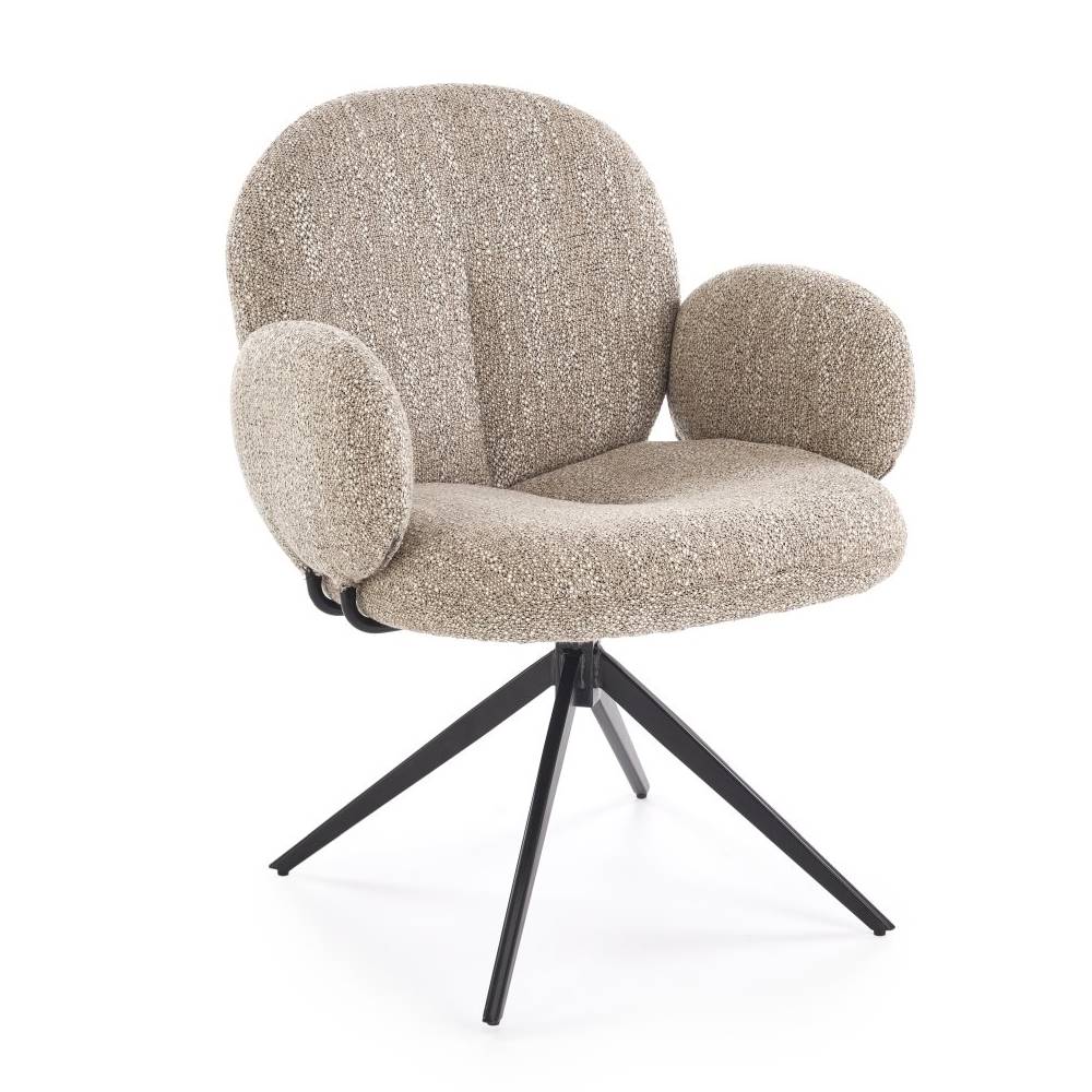 Трапезен стол от еко кожа, текстил и с функция за въртене-бежов