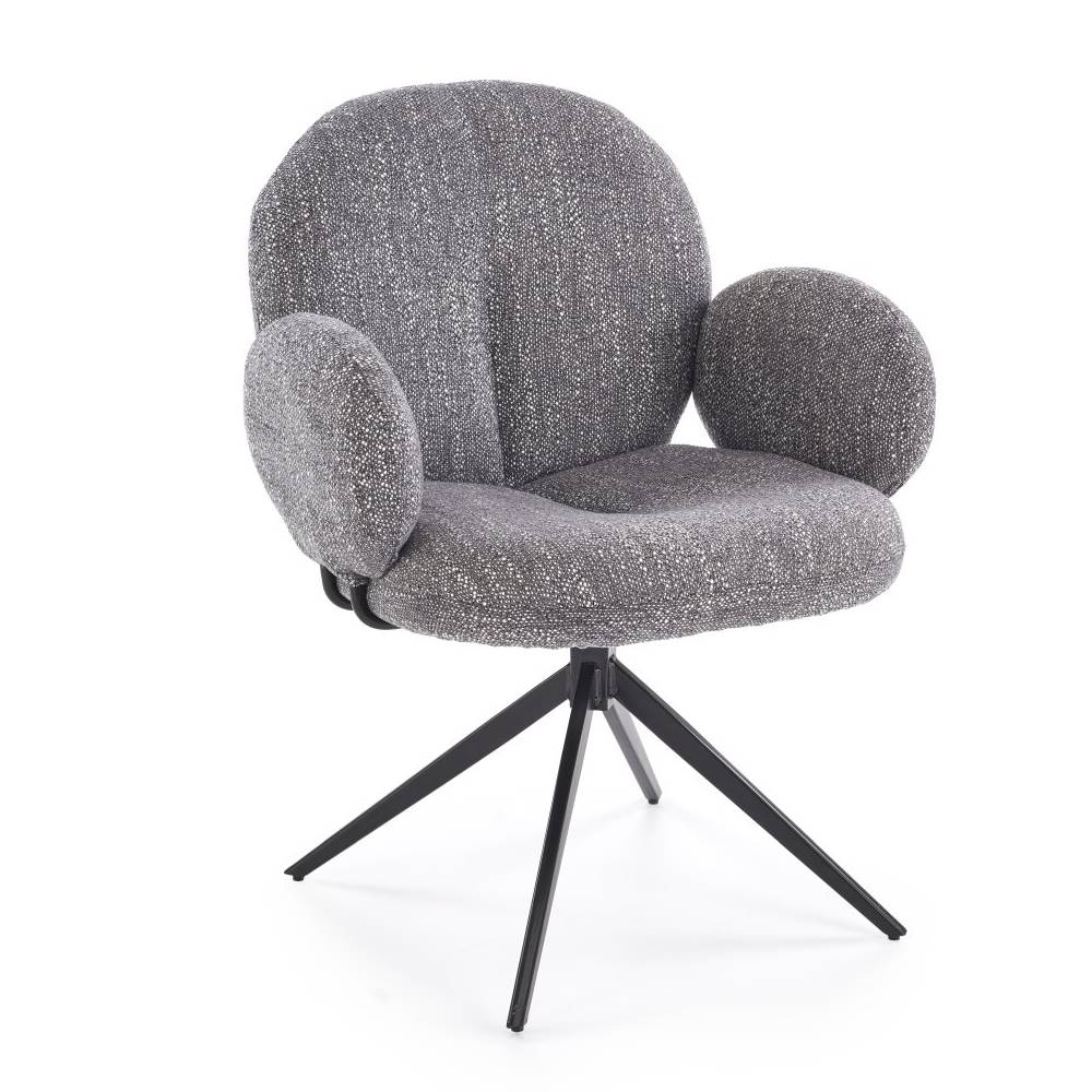 Трапезен стол от еко кожа, текстил и с функция за въртене-сив