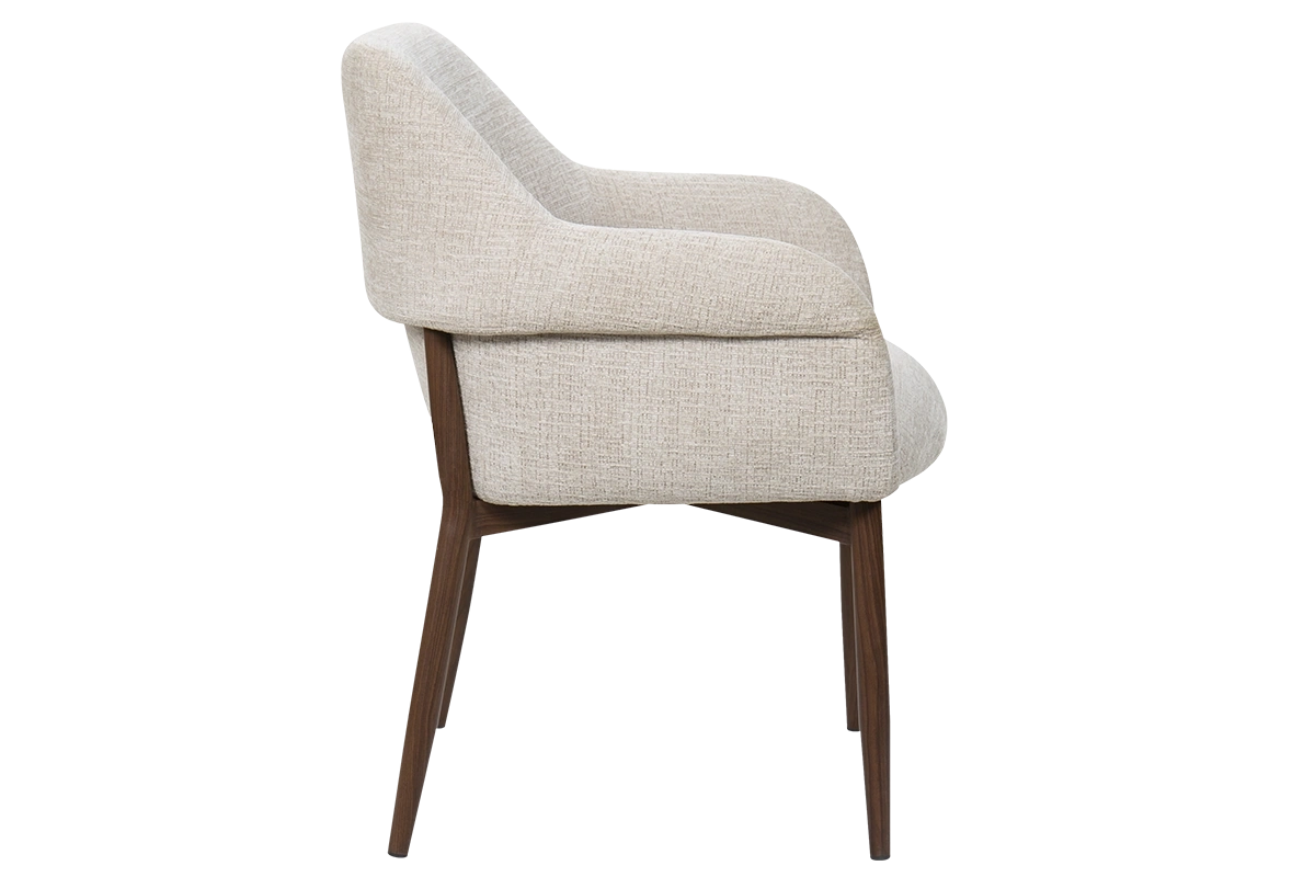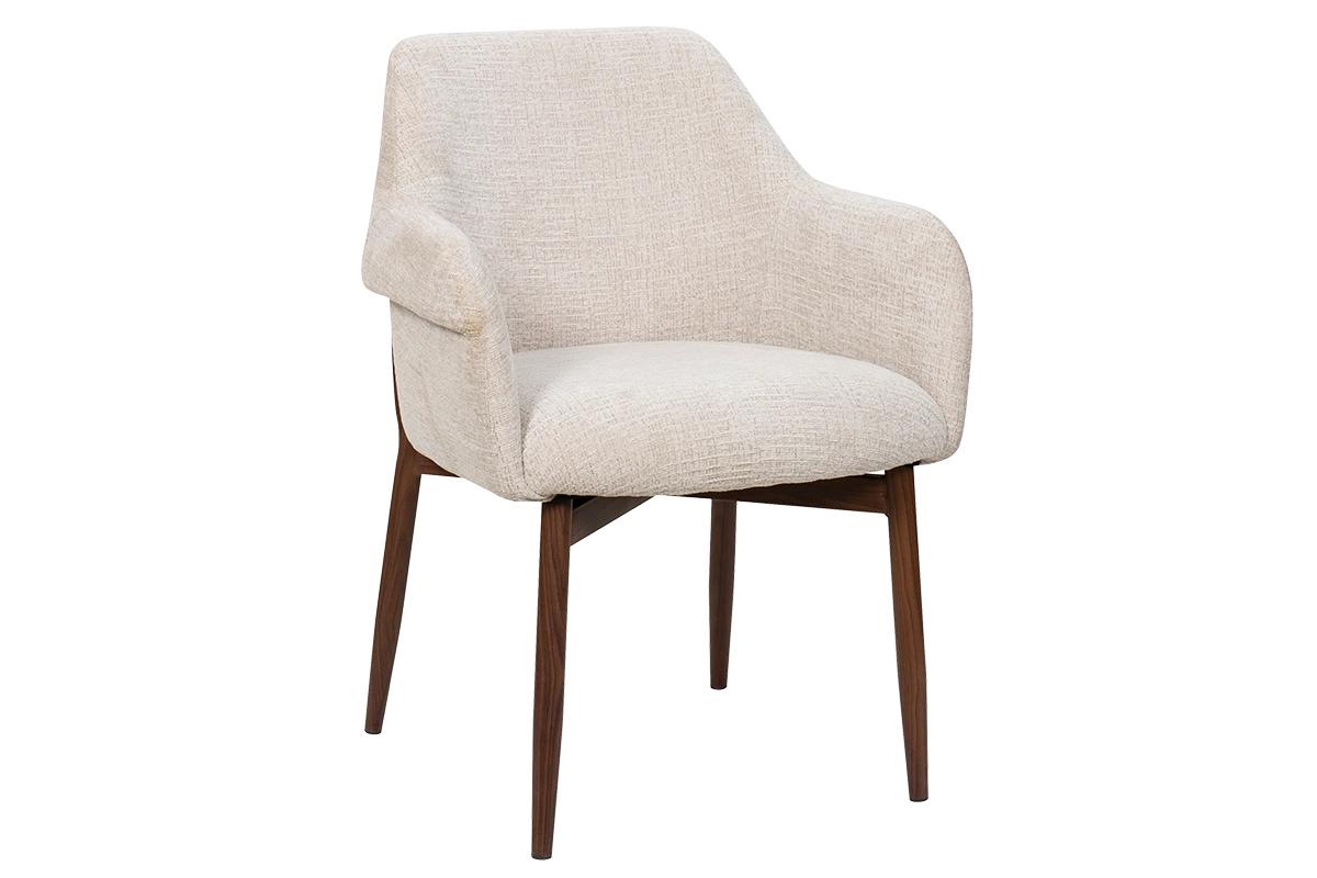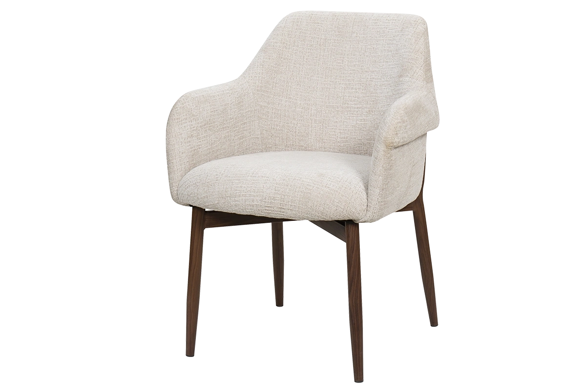 Трапезен стол с подлакътници Bolo е стилно проектиран трапезен стол с мека текстилна дамаска, придаваща стил и уют на интериора.