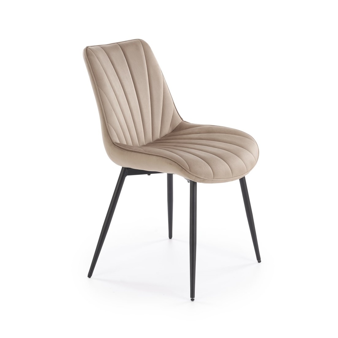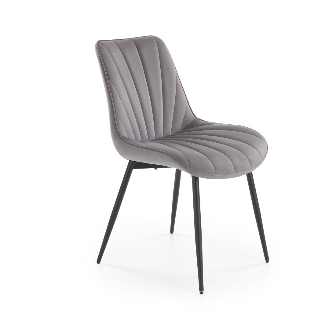 Трапезен стол с текстилна дамаска тип кадифе и стабилна конструкция от праховобоядисана стомана.