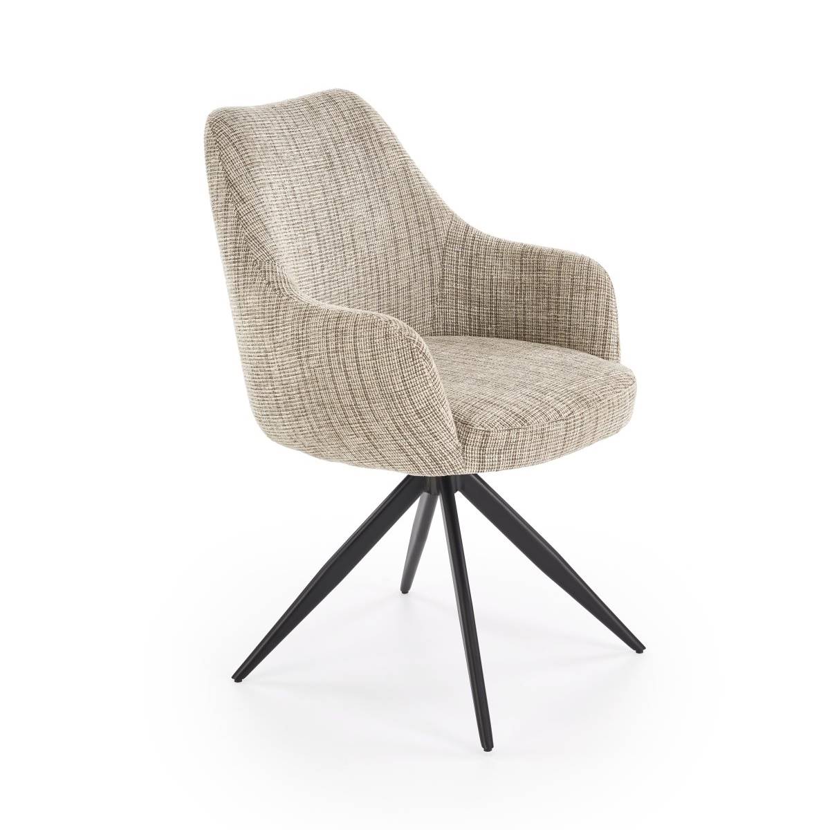 Трапезен стол с текстилна дамаска и метални крака в черен цвят.