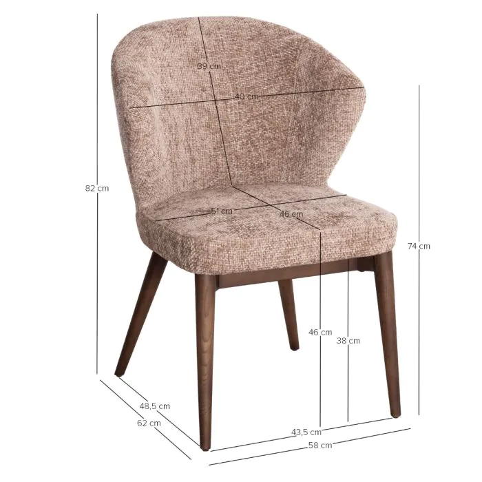 Конструкцията е изработена с основа и крака от ясеново дърво в цвят орех, което гарантира стабилност на стола.