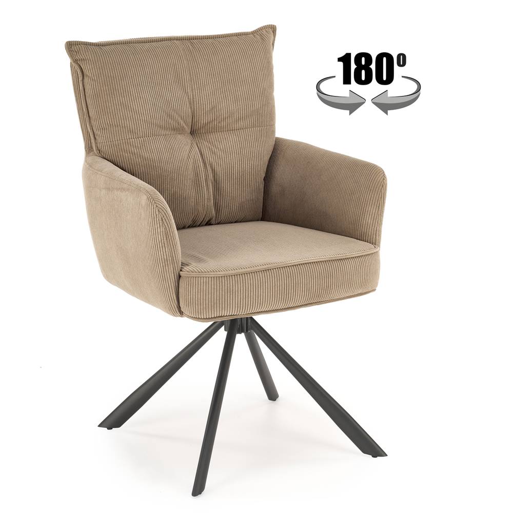 Стилен трапезен стол с въртене на 180 градуса и подлакътници, Стоун.