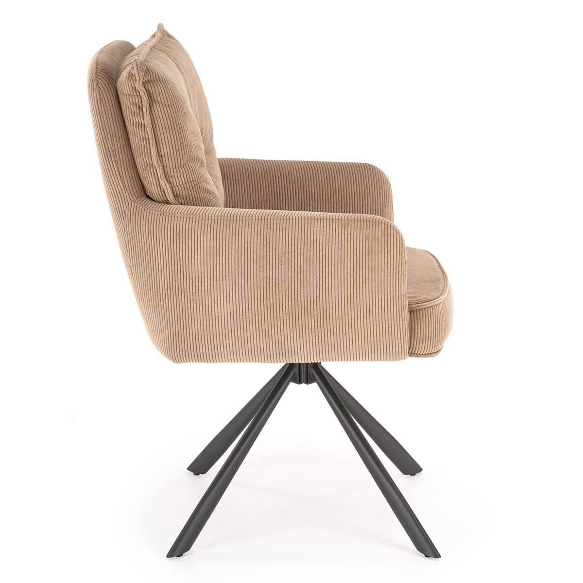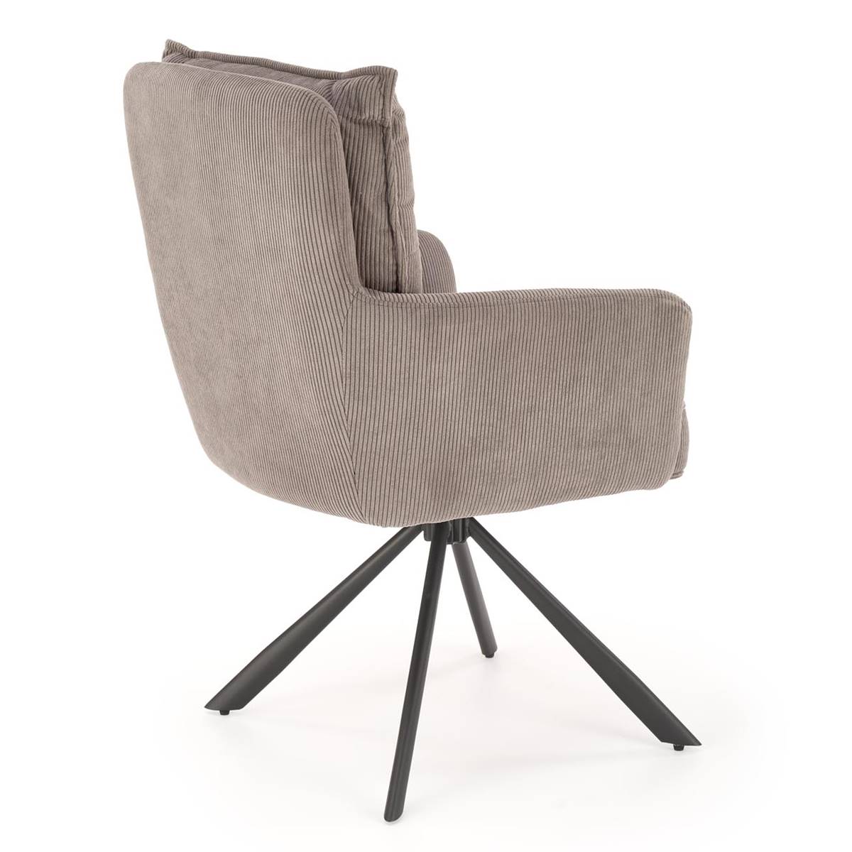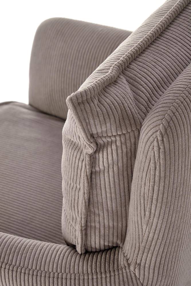 Изработен е от рипсено кадифе в цвят капучино или сиво и праховобоядисана стомана в черно.