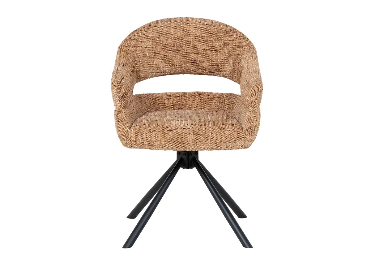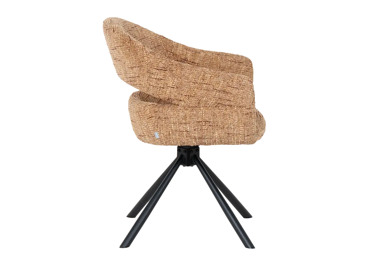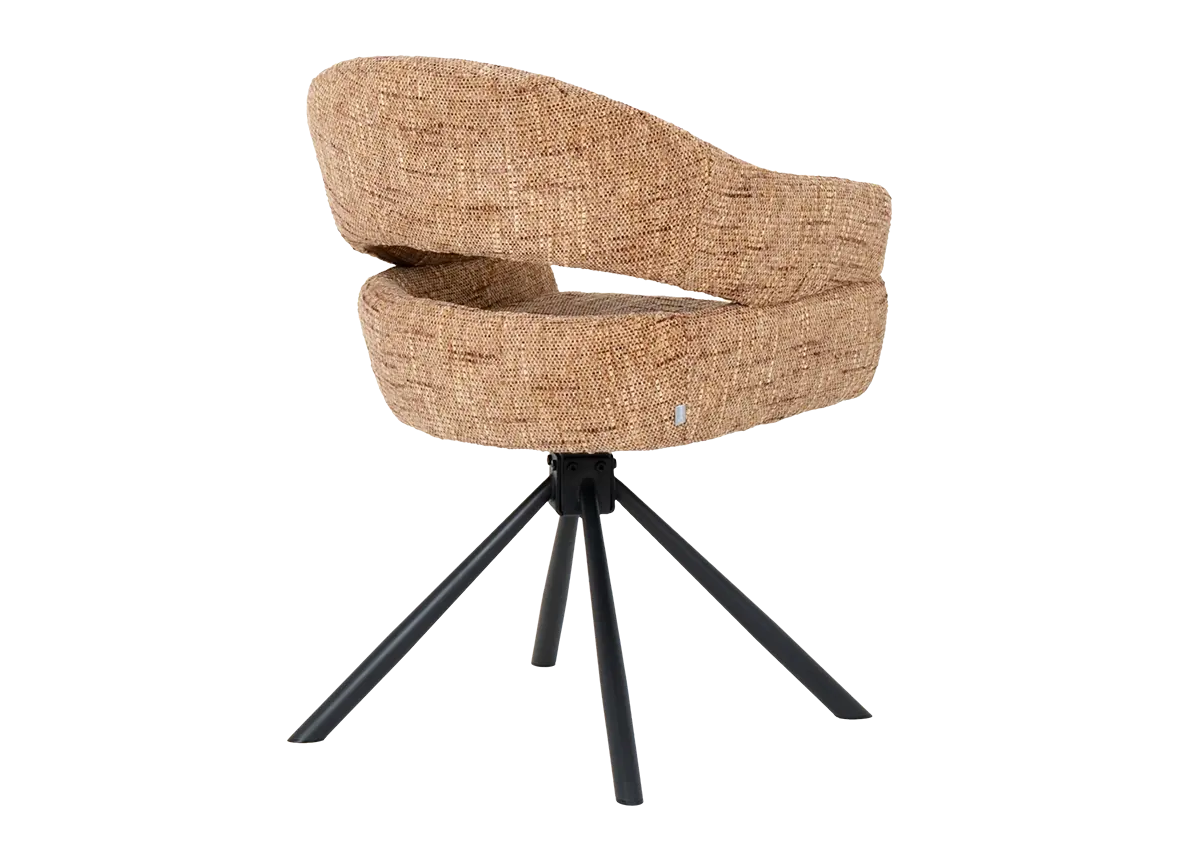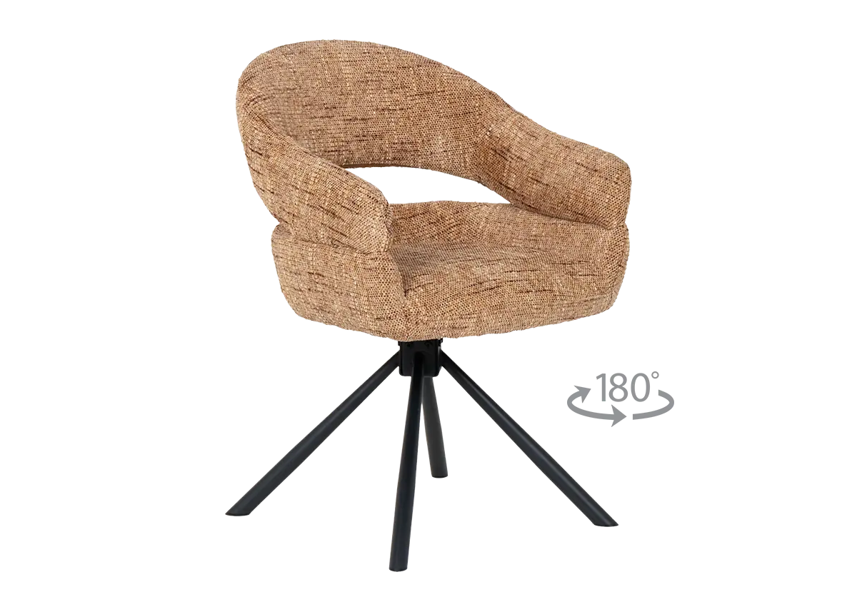 Моделът разполага с въртящ механизъм с автоматично връщане в изходна позиция, което улеснява подреждането около масата. Овалната форма с подлакътници и изрязан гръб допринасят за свобода на движение на тялото.