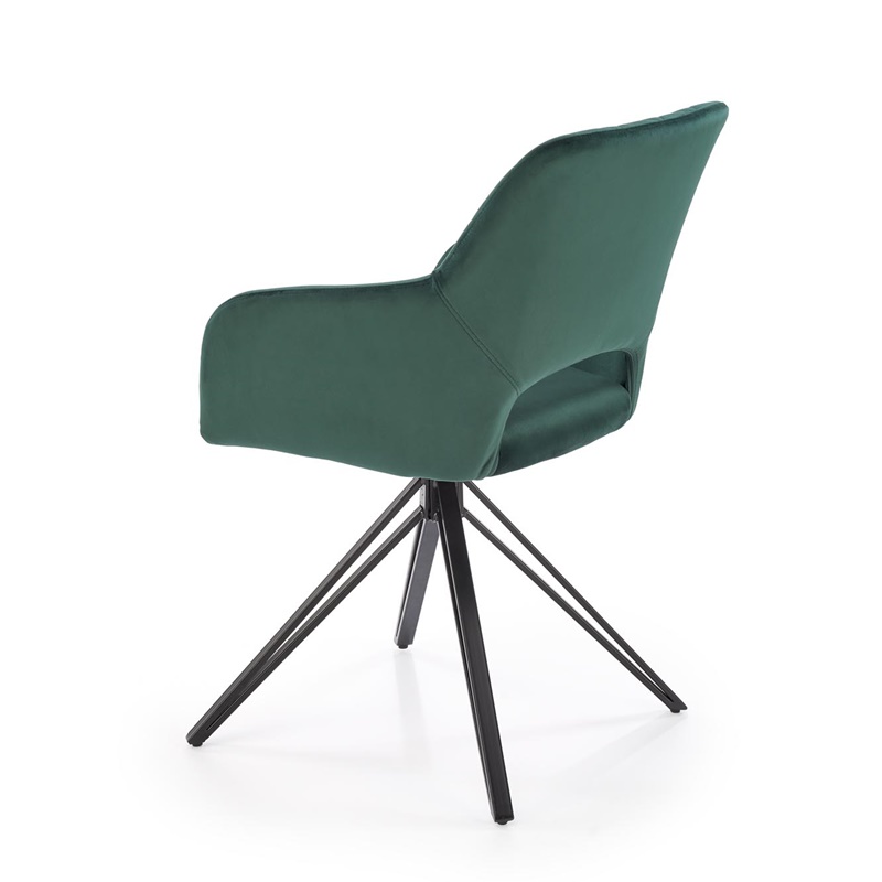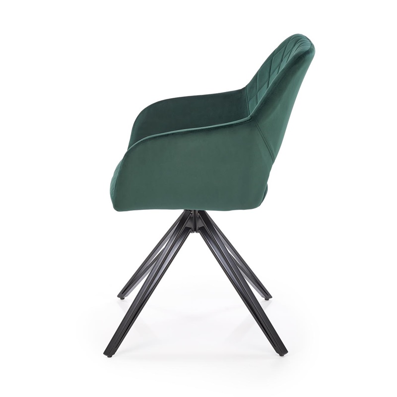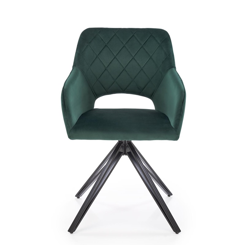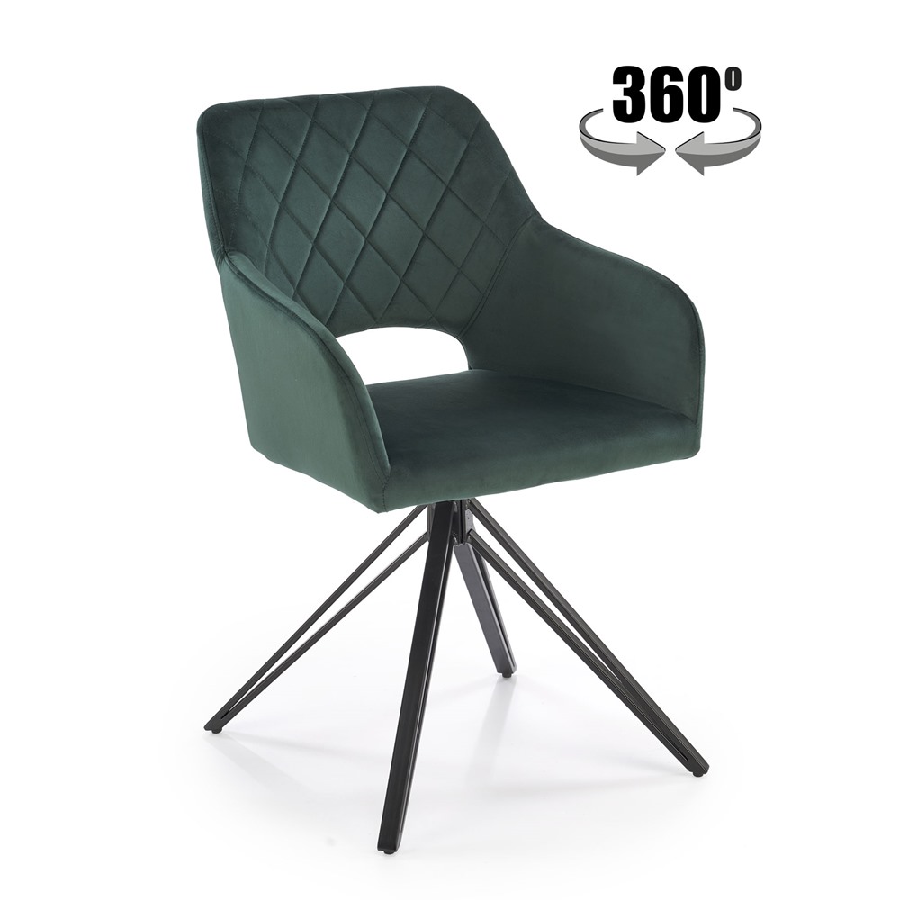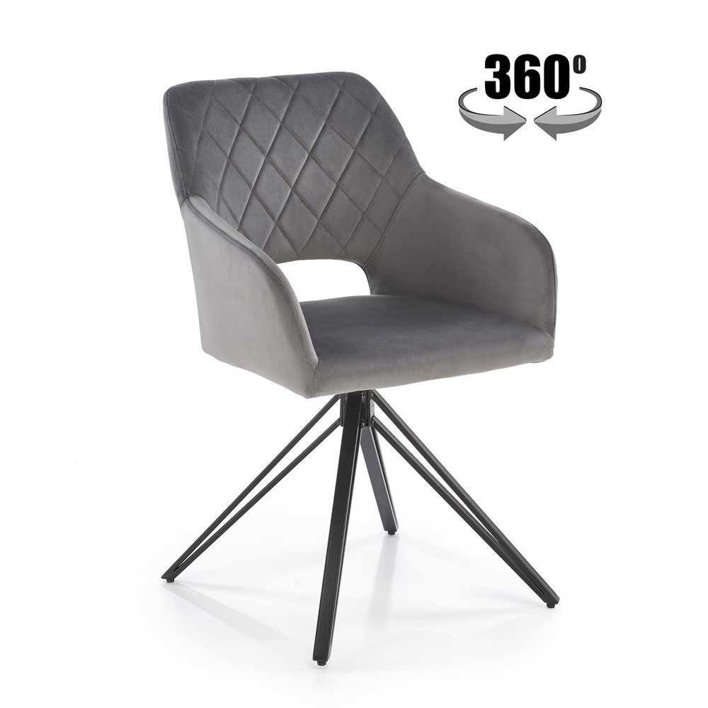 Трапезен стол с въртене на 360 градуса, изработен с текстилна дамаска и метални крака.