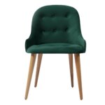 Атрактивен трапезен стол, изработен с дървени букови крака и зелена капитонирана дамаска.