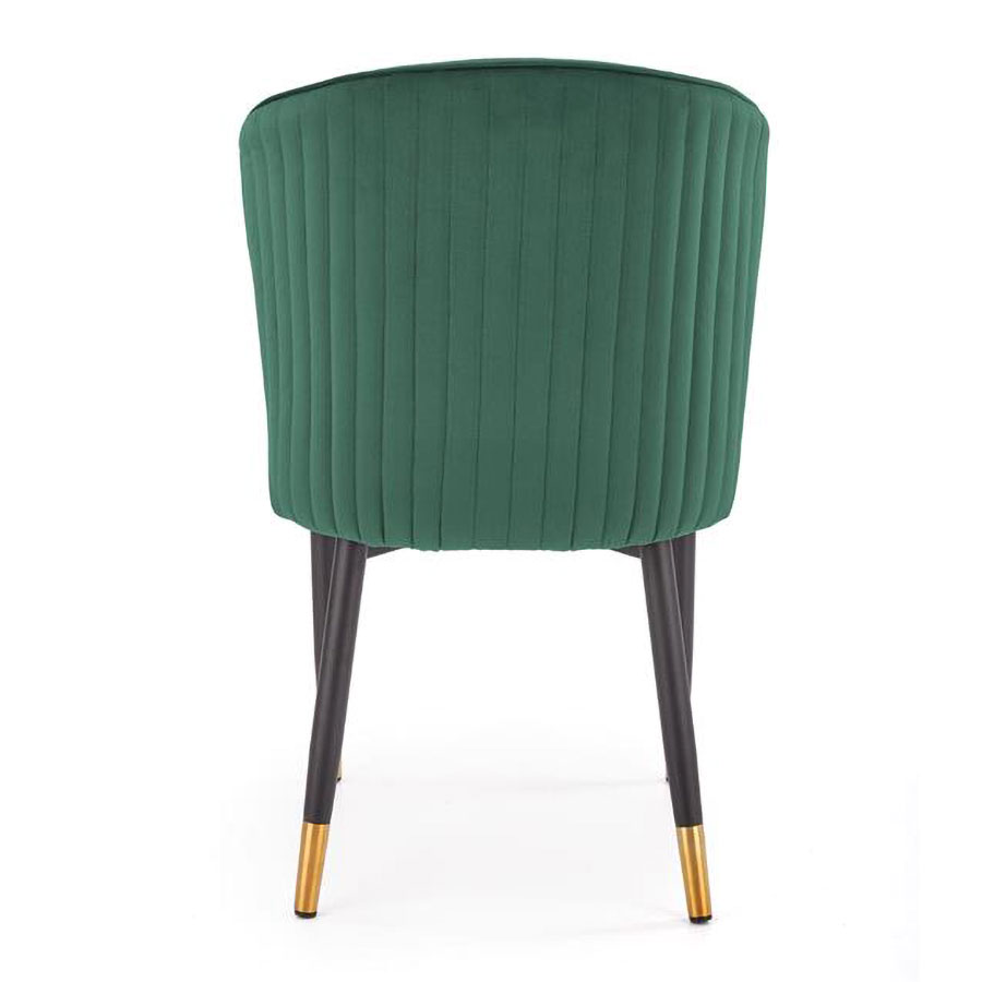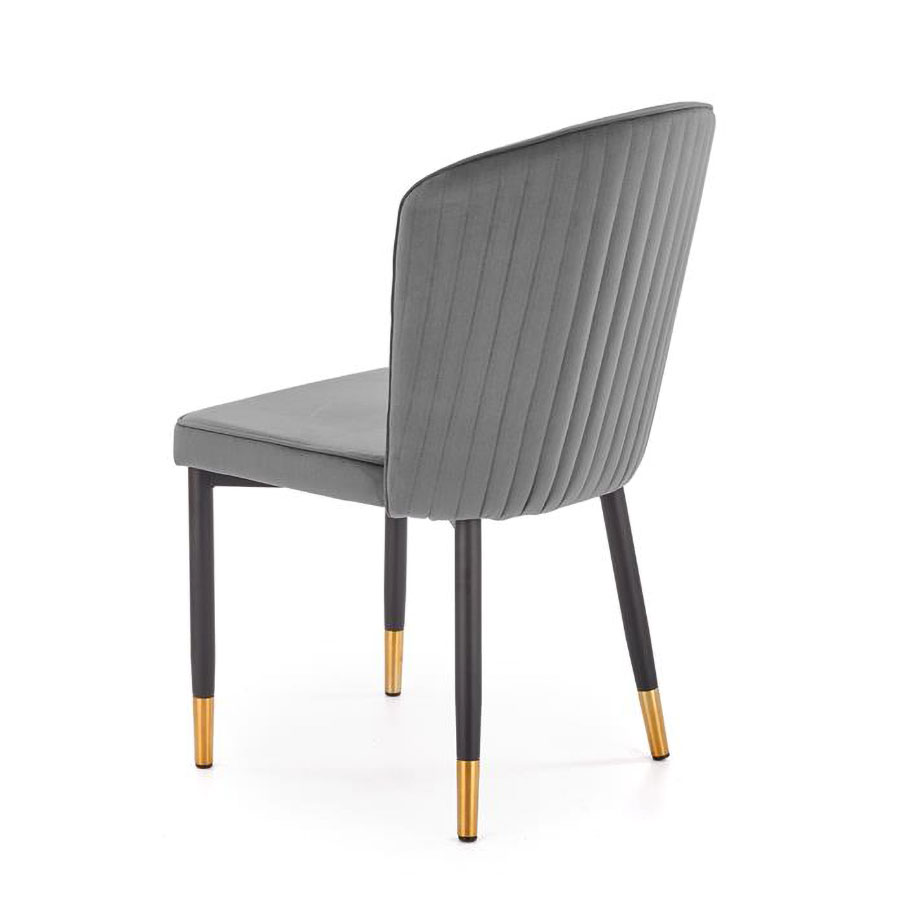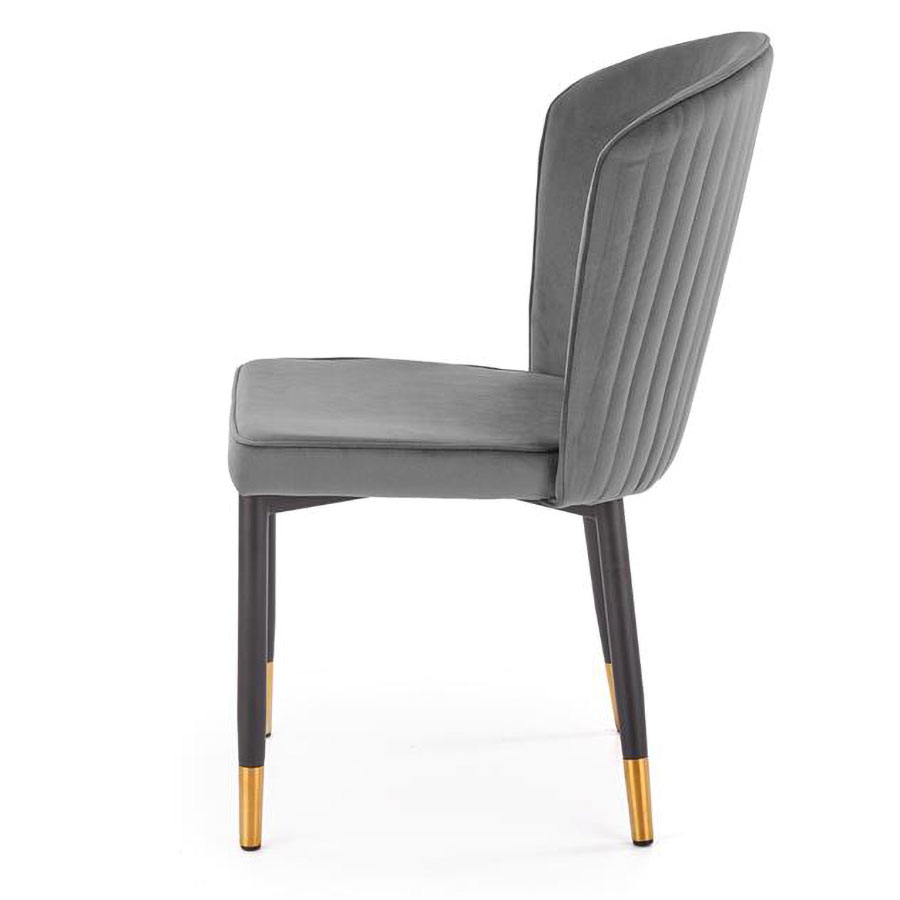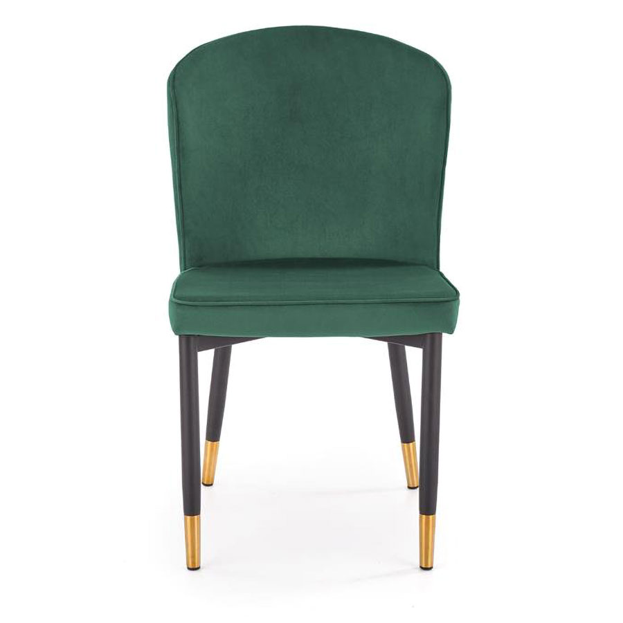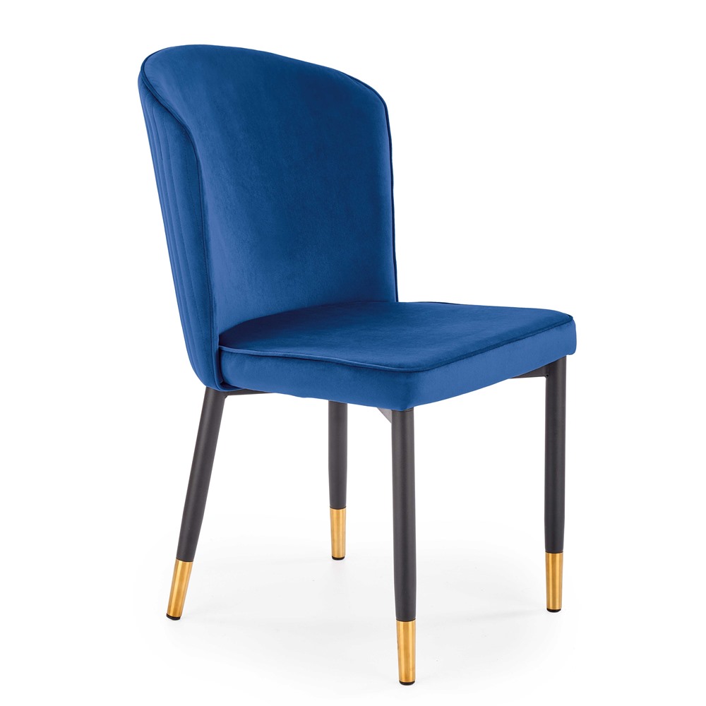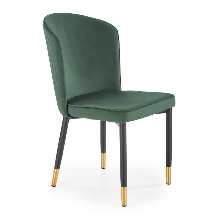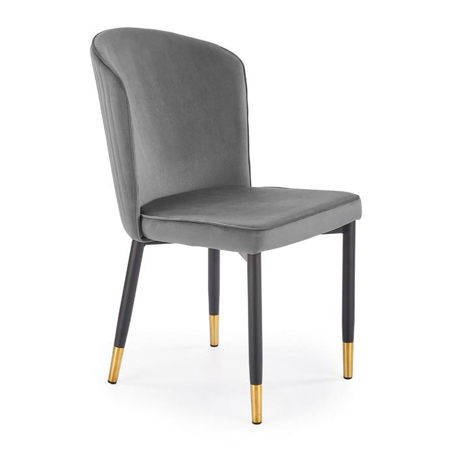 Трапезен стол с дамаска от кадифе и черни метални крака със златисти детайли.
