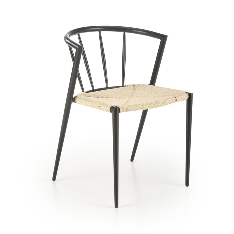 Красив трапезен стол с извита метална облегалка и седалка от корда.