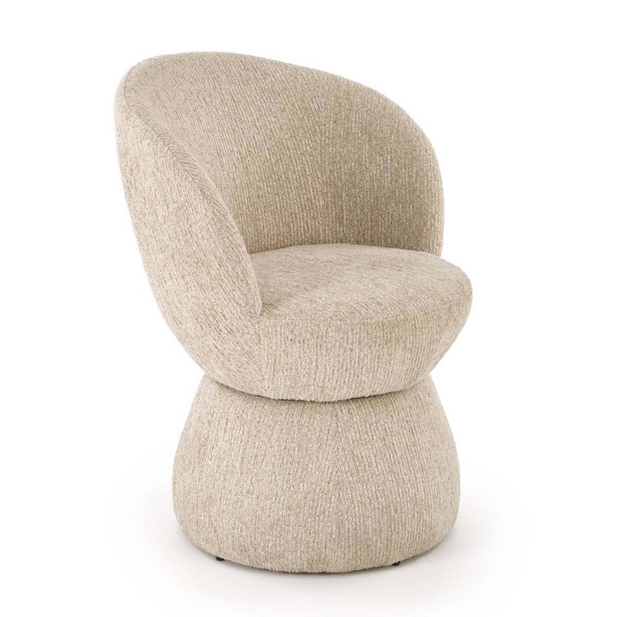 Тапициран с мека и приятна на допир тъкан, този стол създава усещане за уют и спокойствие. Неутралният нюанс го прави лесен за съчетаване с различни интериори.