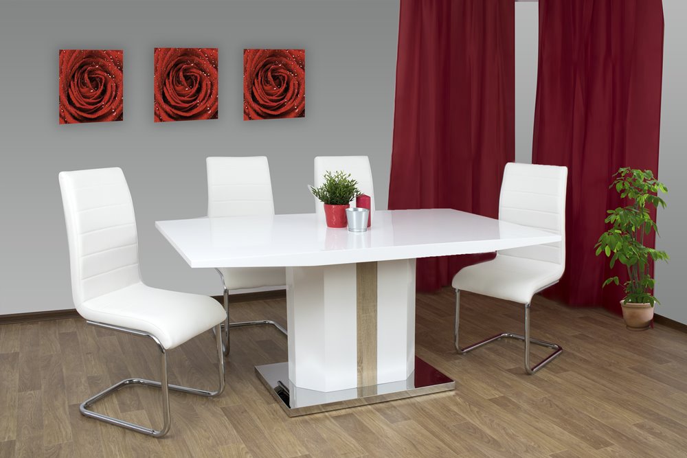 Елегантна трапезна маса в комбинация бяло и дъб сонома Трело.