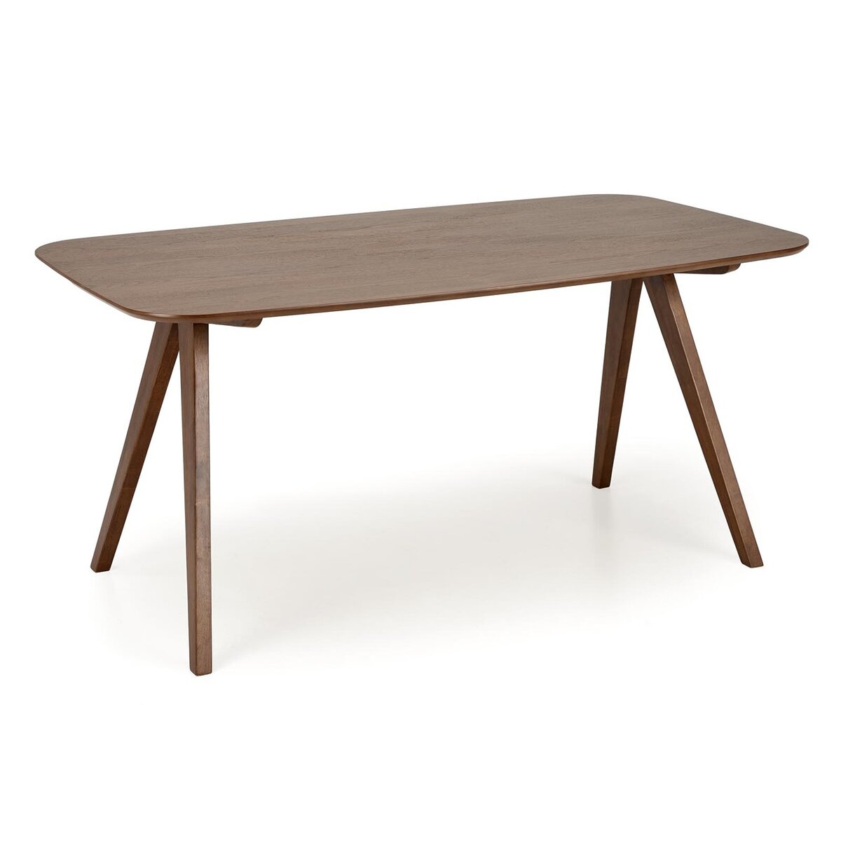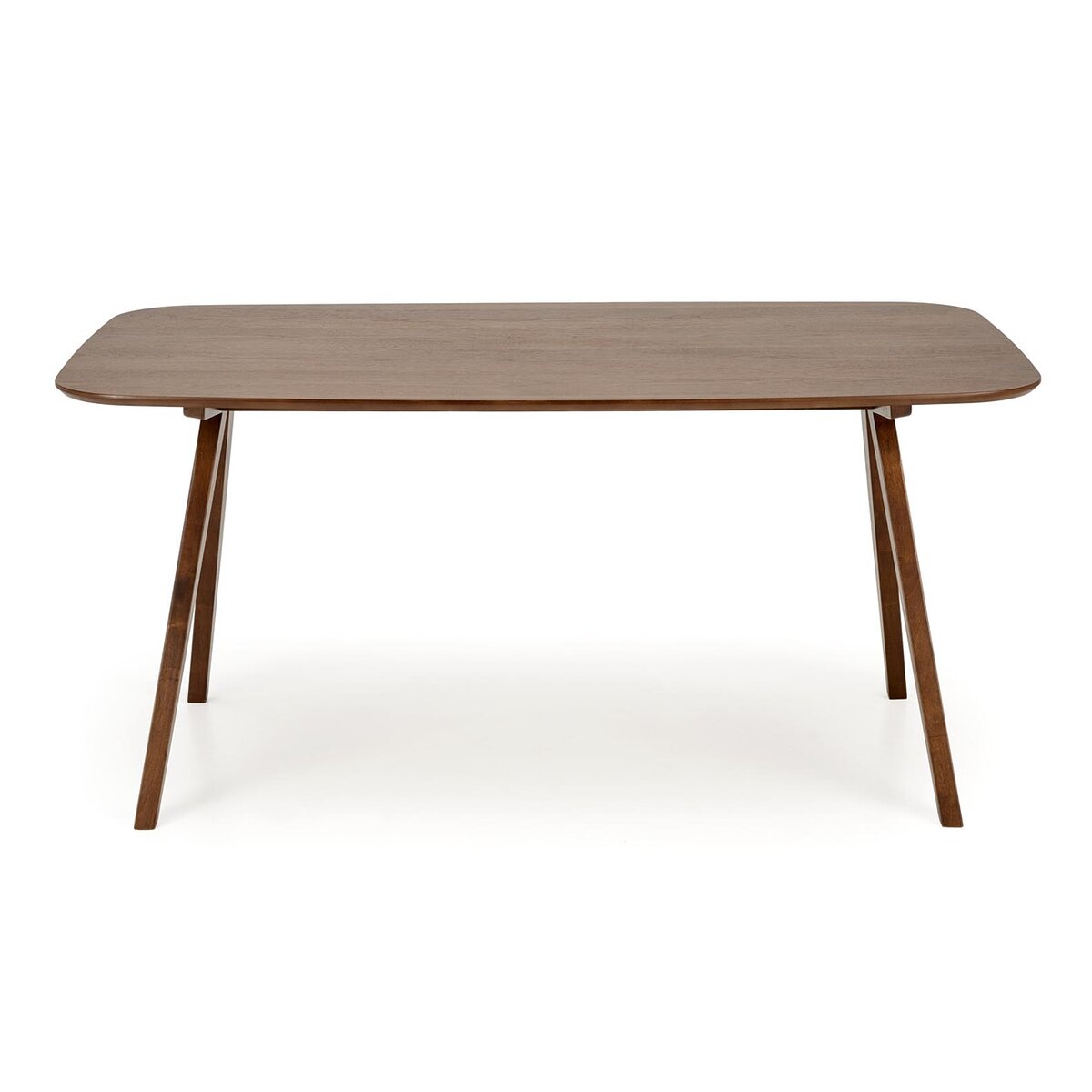 Стилна трапезна маса с дървен плот в цвят орех и крака от масивна каучукова дървесина, Нейтън.