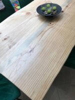 Трапезна маса с плот от масивно дърво и черни метални крака.