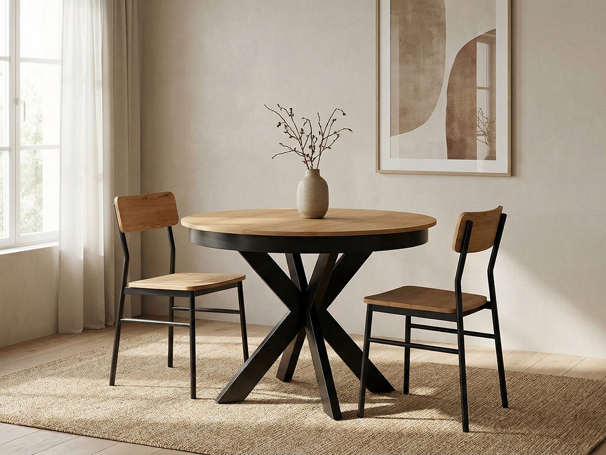 Елегантна трапезна маса с кръгъл плот и опция разтягане, серия Fonti – идеална за семейни вечери и гости.