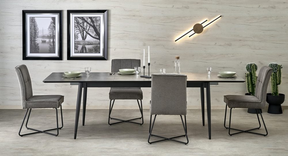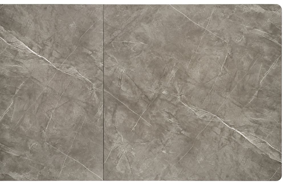 Разтегателна трапезна маса с правоъгълен плот от фурнирован МДФ – меламин като сив мрамор, Чарли.