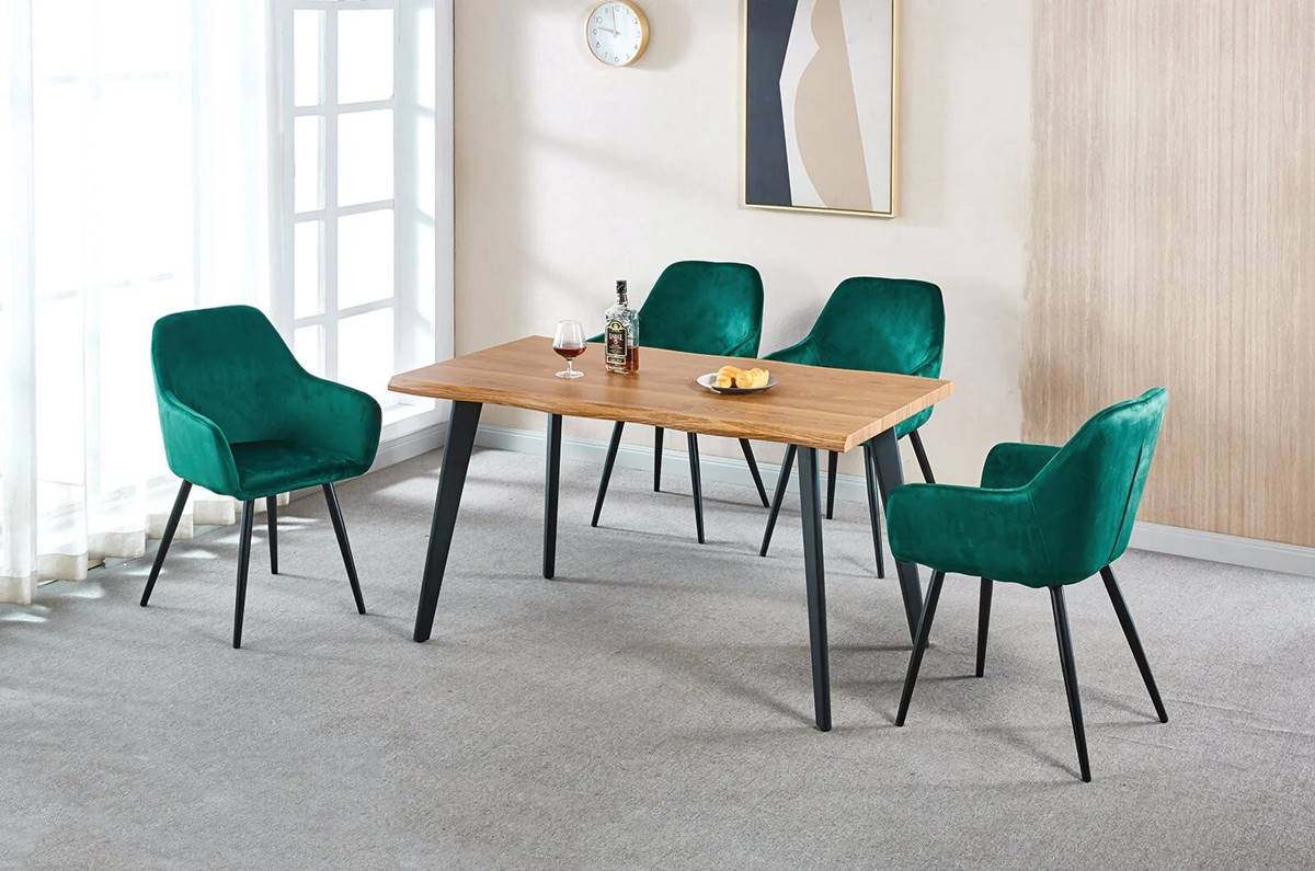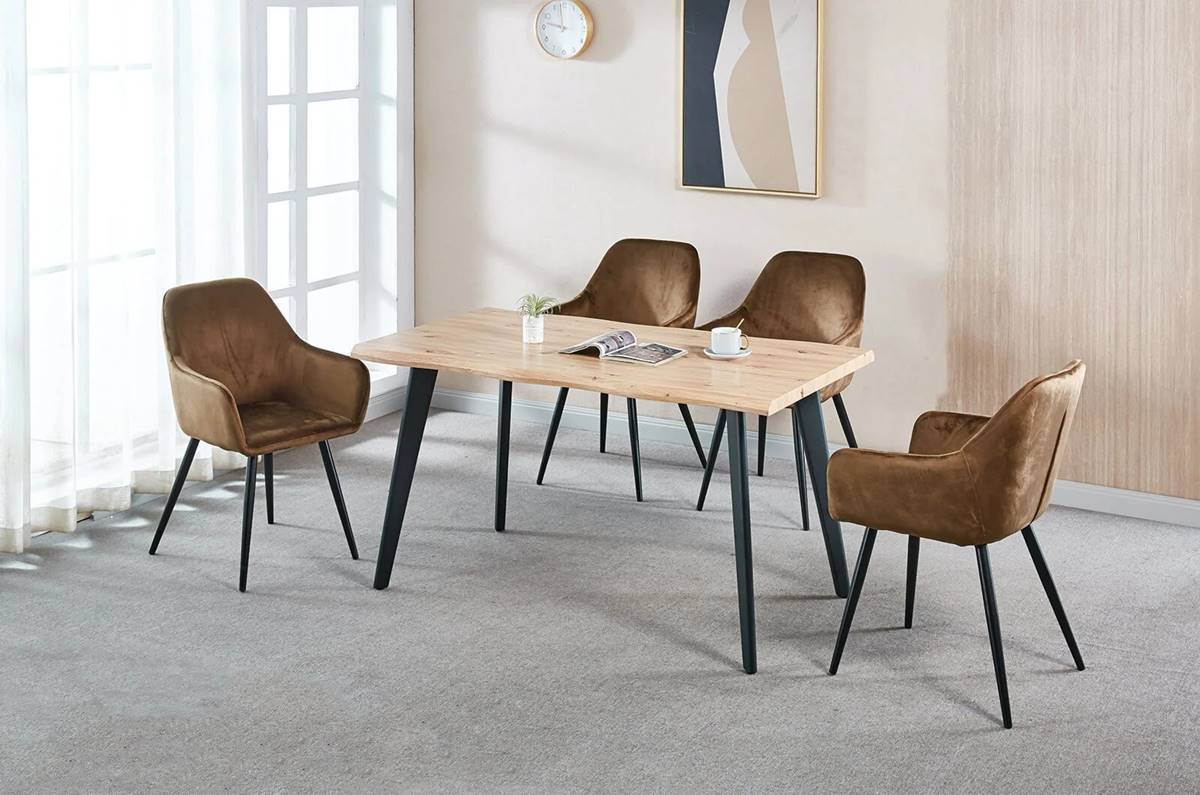 Трапезна маса за хранене, предлагаща се в два цвята на правоъгълния плот – дъб кендъл и дъб небраска натур, Тео.