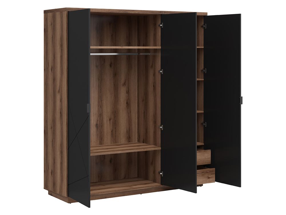 Трикрилен гардероб с рафтове и чекмеджета Форн (4 цвята)