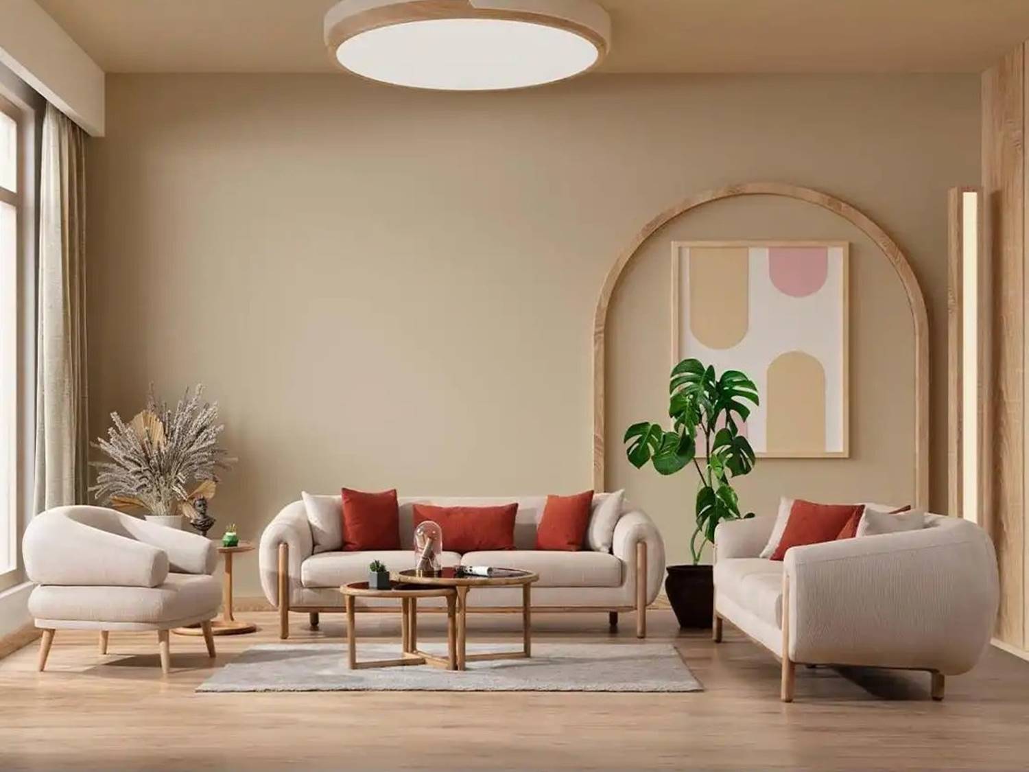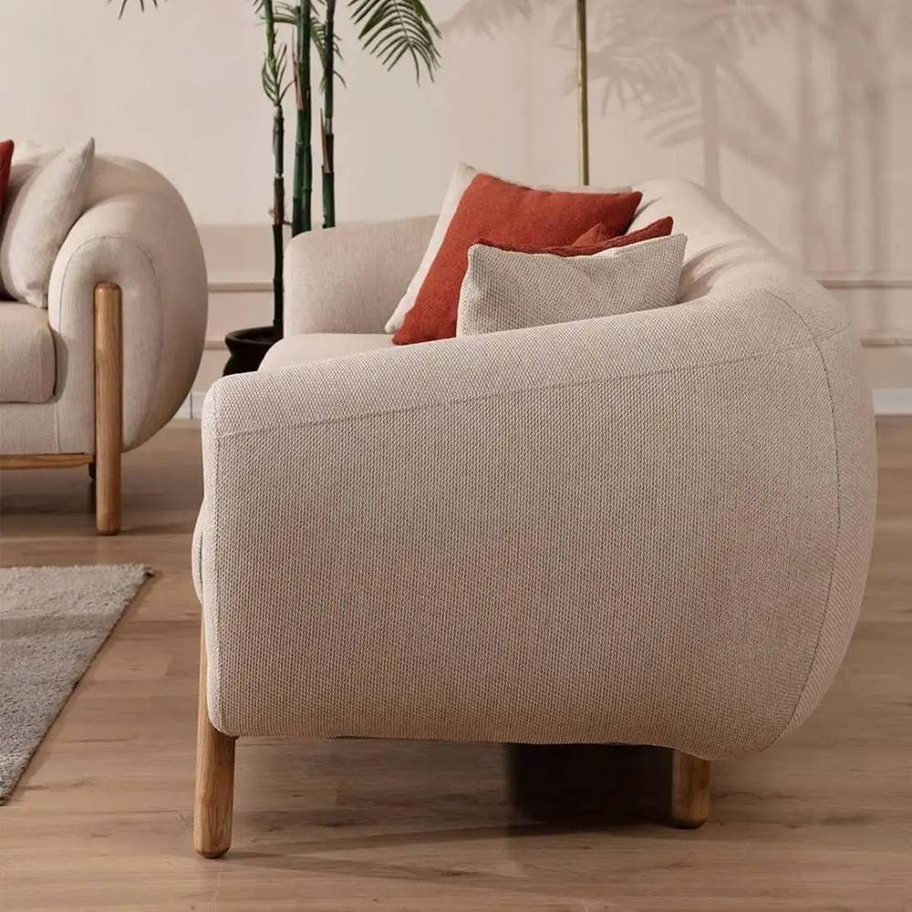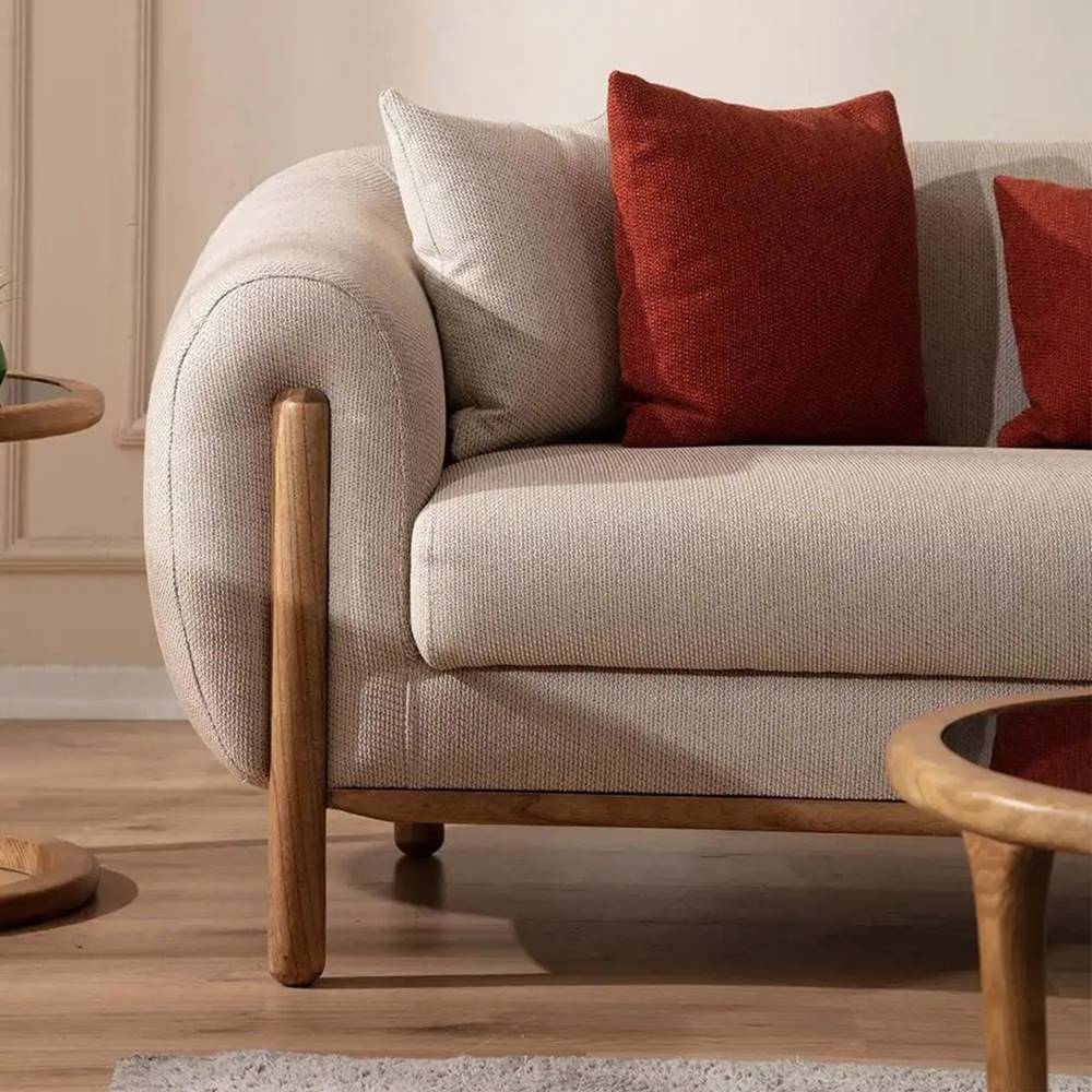 Триместният диван в бежов цвят Como впечатлява със своята функционалност и минималистична естетика.
