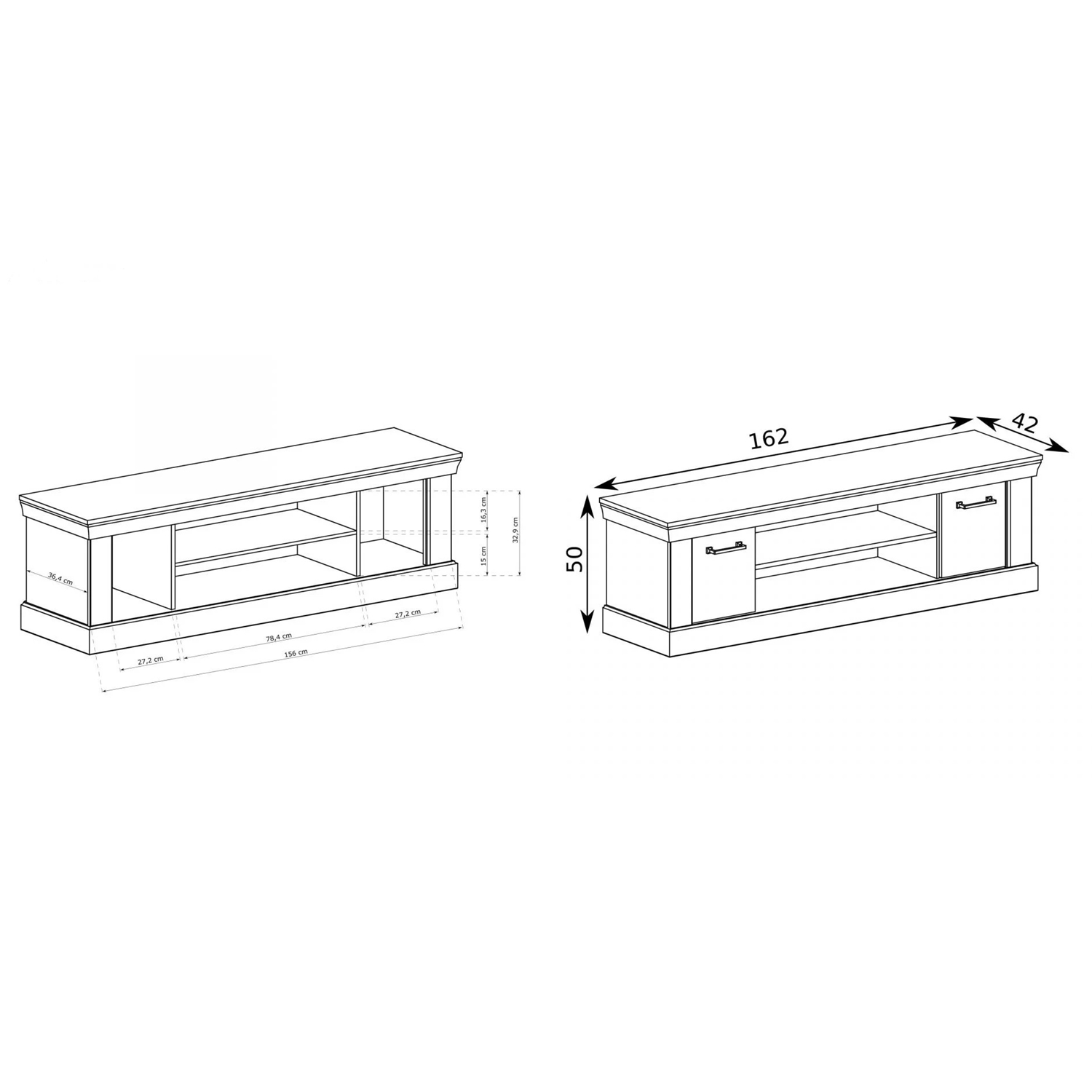 ТВ шкаф с две вратички и рафт серия Antica