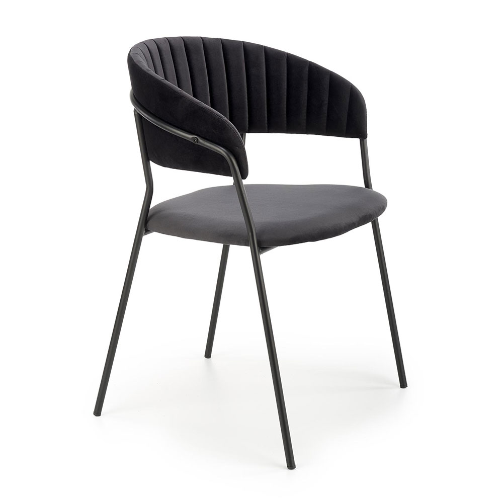 Удобен трапезен стол от кадифе и метал в черен цвят - отпред
