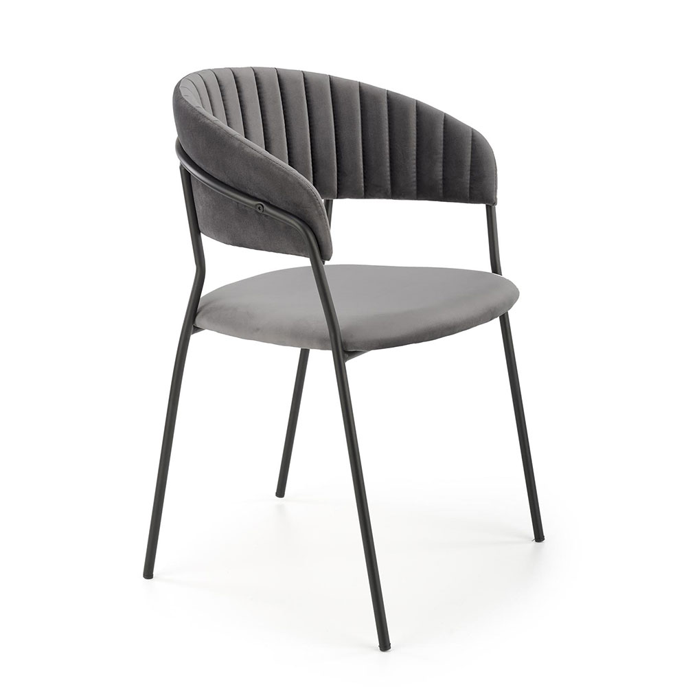 Удобен трапезен стол от кадифе и метал в сив цвят - отстрани