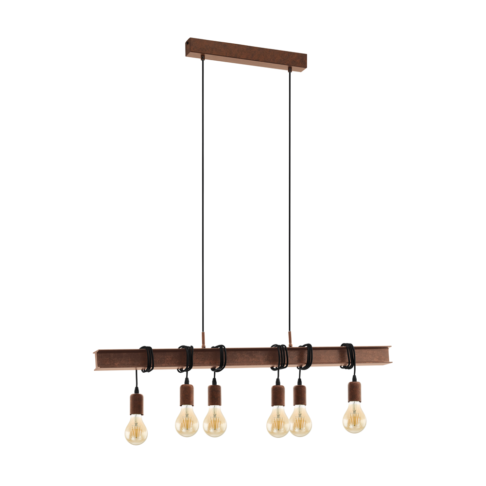 Винтидж пендел в античнокафяво, с шест крушки, Eglo серия Townshend 4.