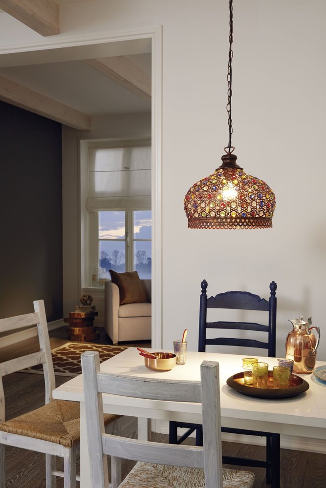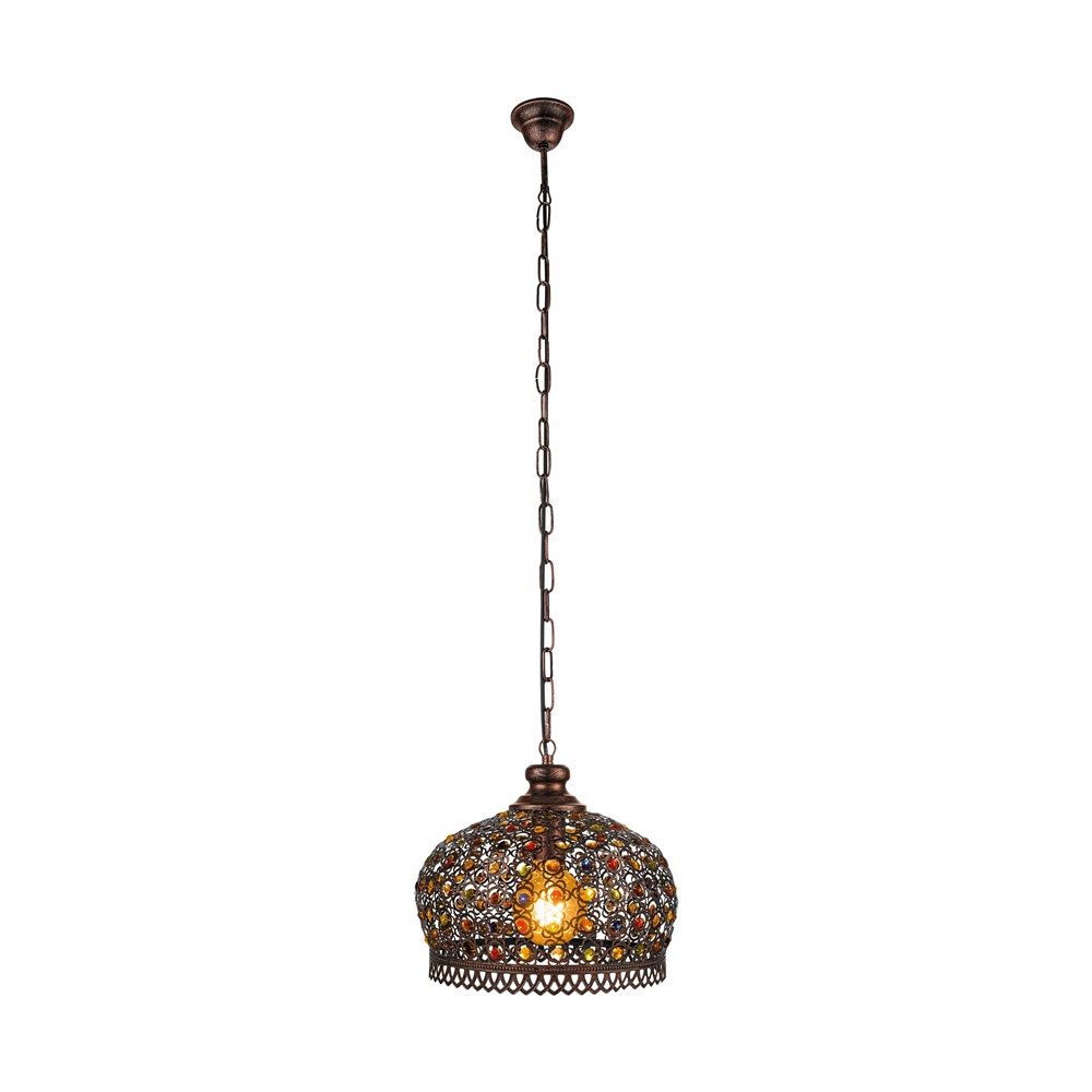 - Цвят: корпус: мед-антик, абажур – цветно стъкло