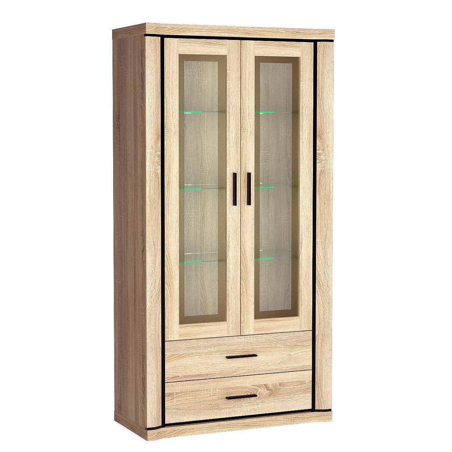 Висок шкаф-витрина с две врати от закалено стъкло, серия Dallas.