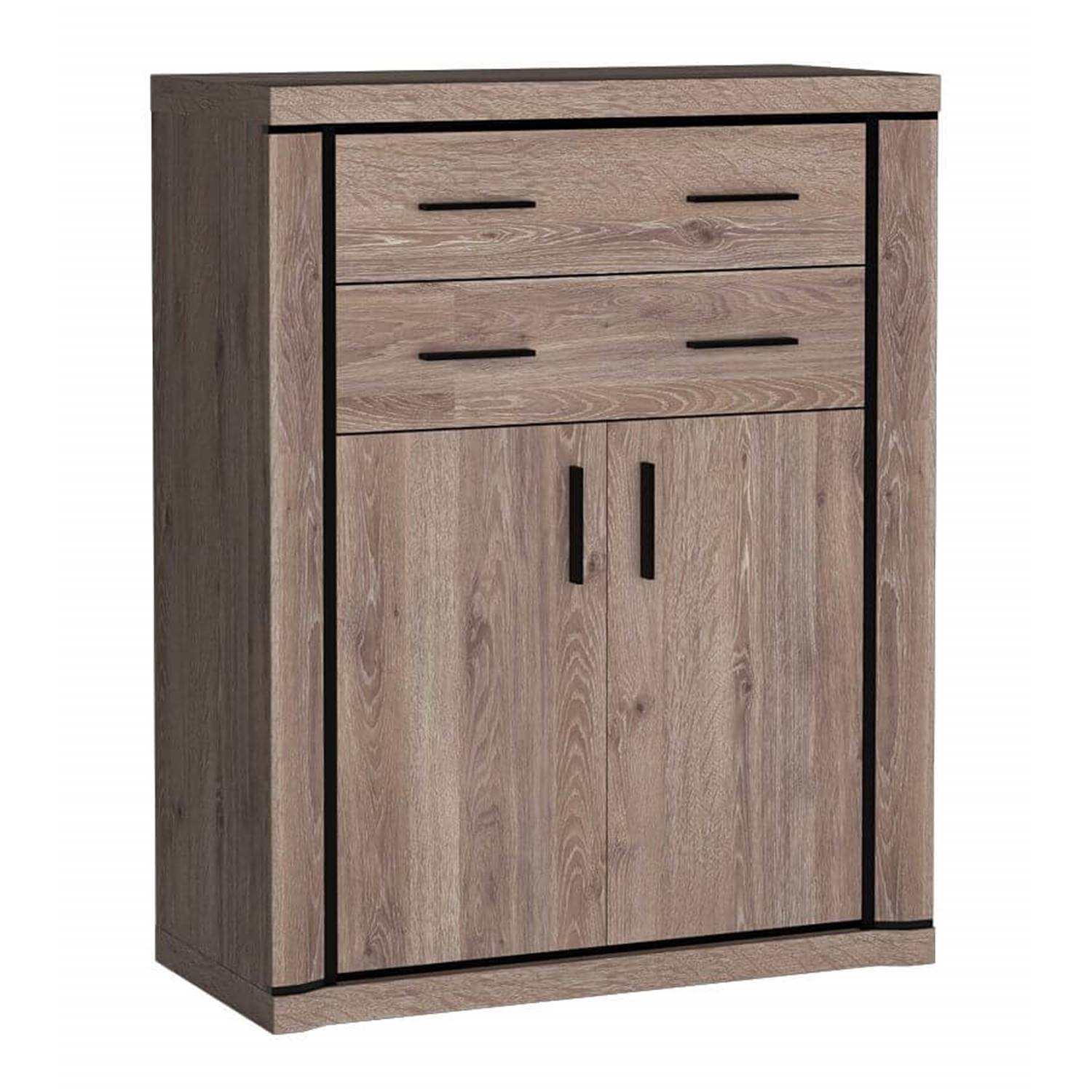 Моделът разполага с две големи чекмеджета и шкафче с две вратички и рафт, който разделя вътрешното пространство на две, осигурявайки лесна и подредена организация на дрехи и различни аксесоари.