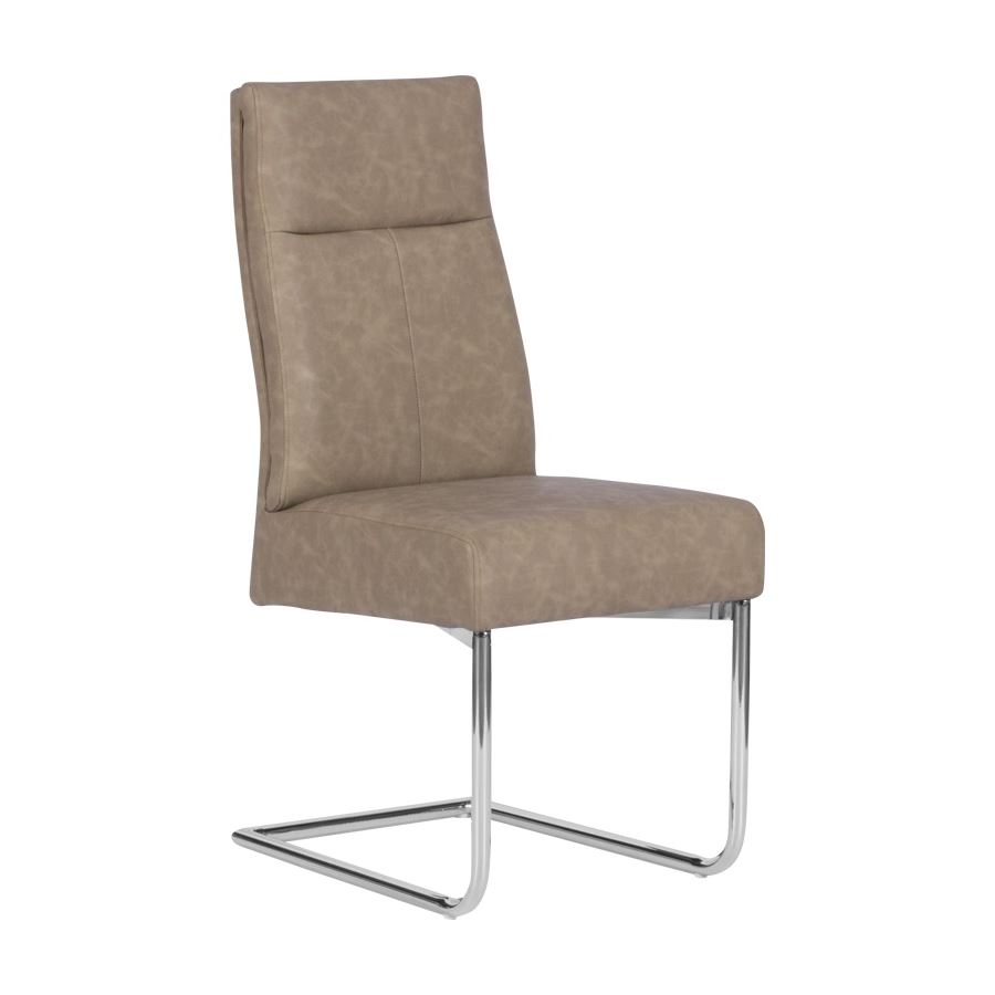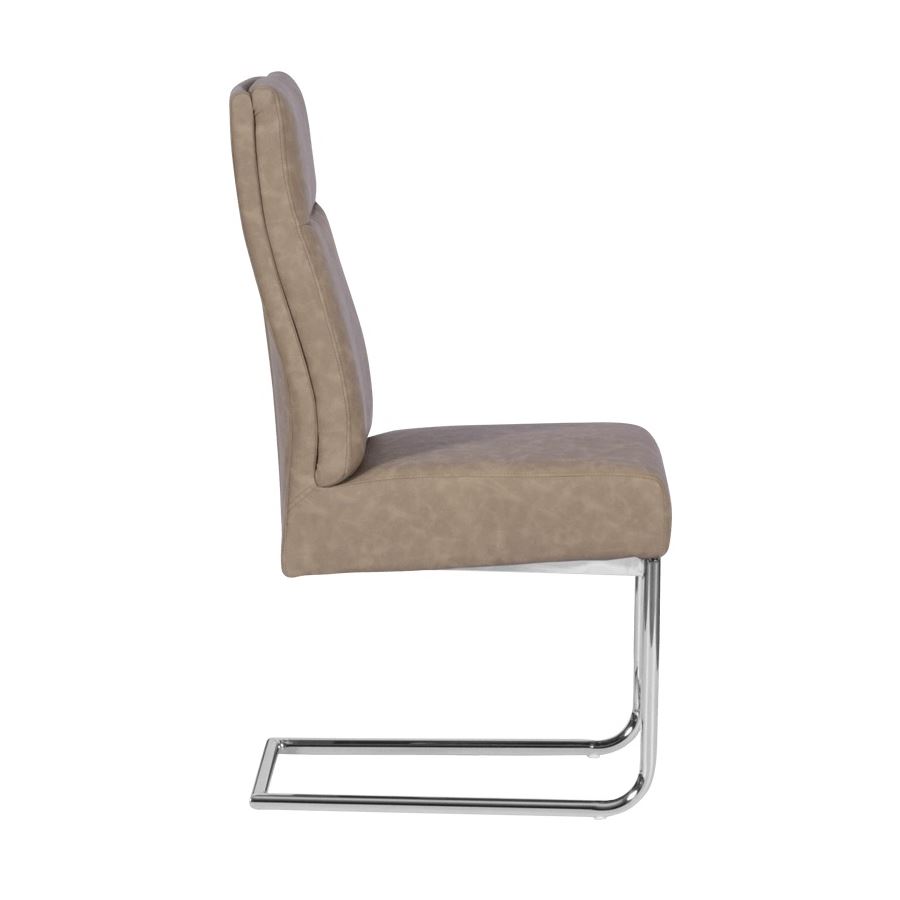 Висок трапезен стол от еко кожа и нестандартна основа-бежов, странично