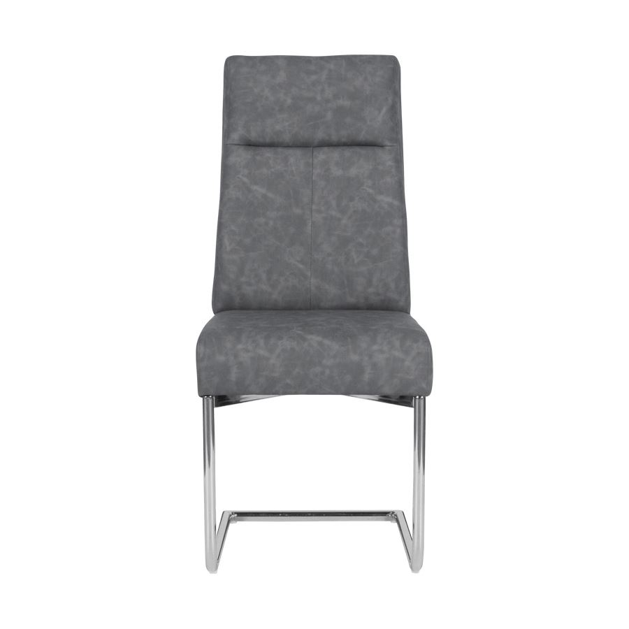 Висок трапезен стол от еко кожа и нестандартна основа-сив, отпред