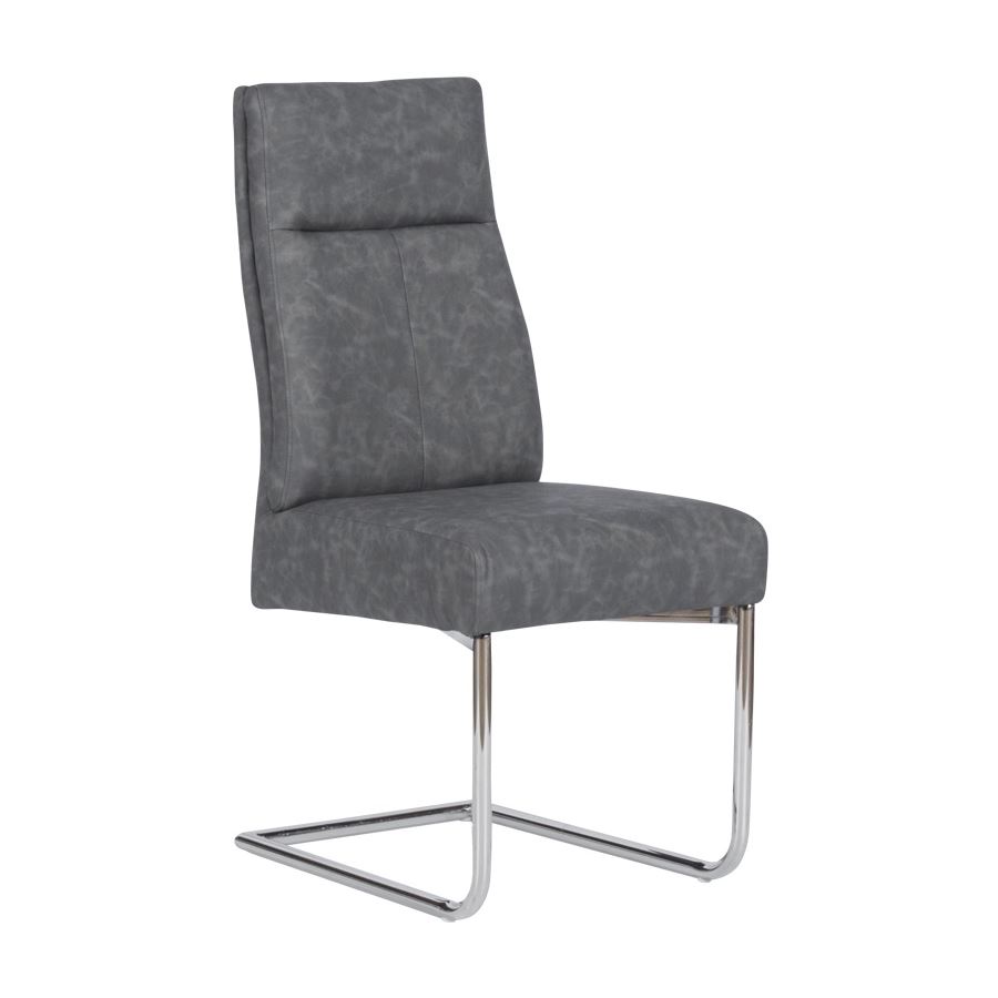 Висок трапезен стол от еко кожа и нестандартна основа-сив