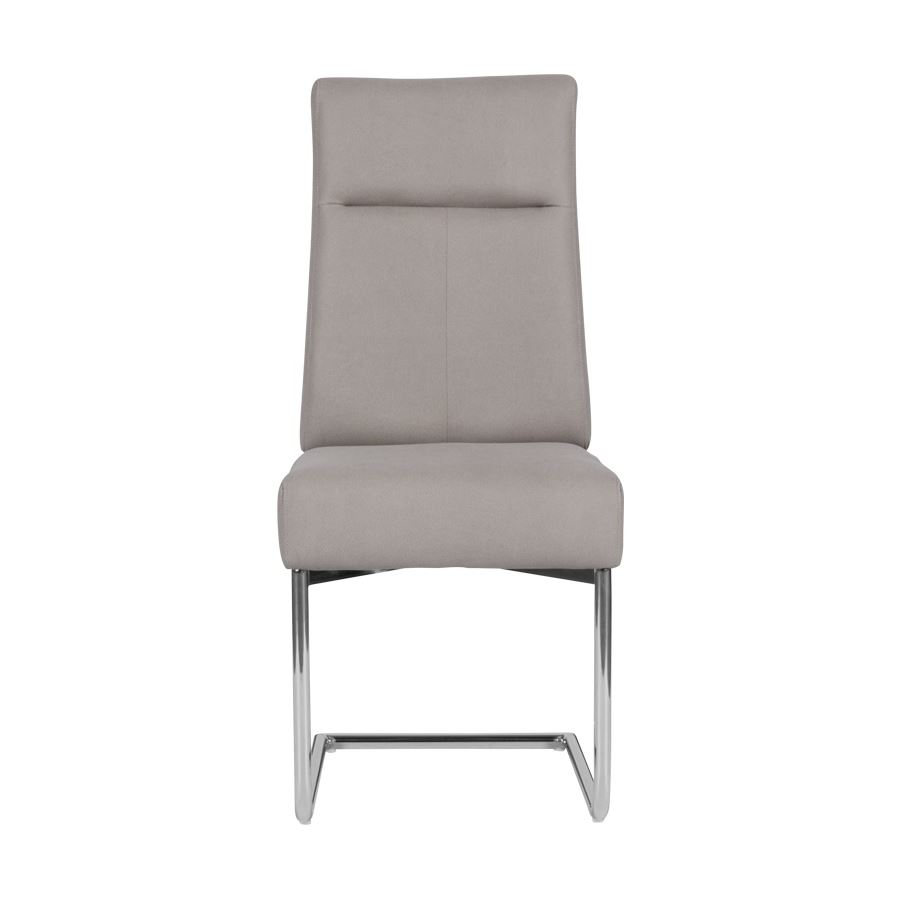 Висок трапезен стол от еко кожа и нестандартна основа-сиво-бежов, отпред