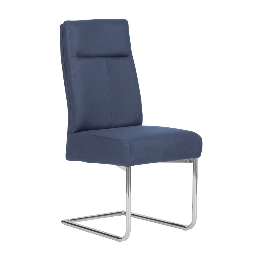 Висок трапезен стол от еко кожа и нестандартна основа-тъмносин