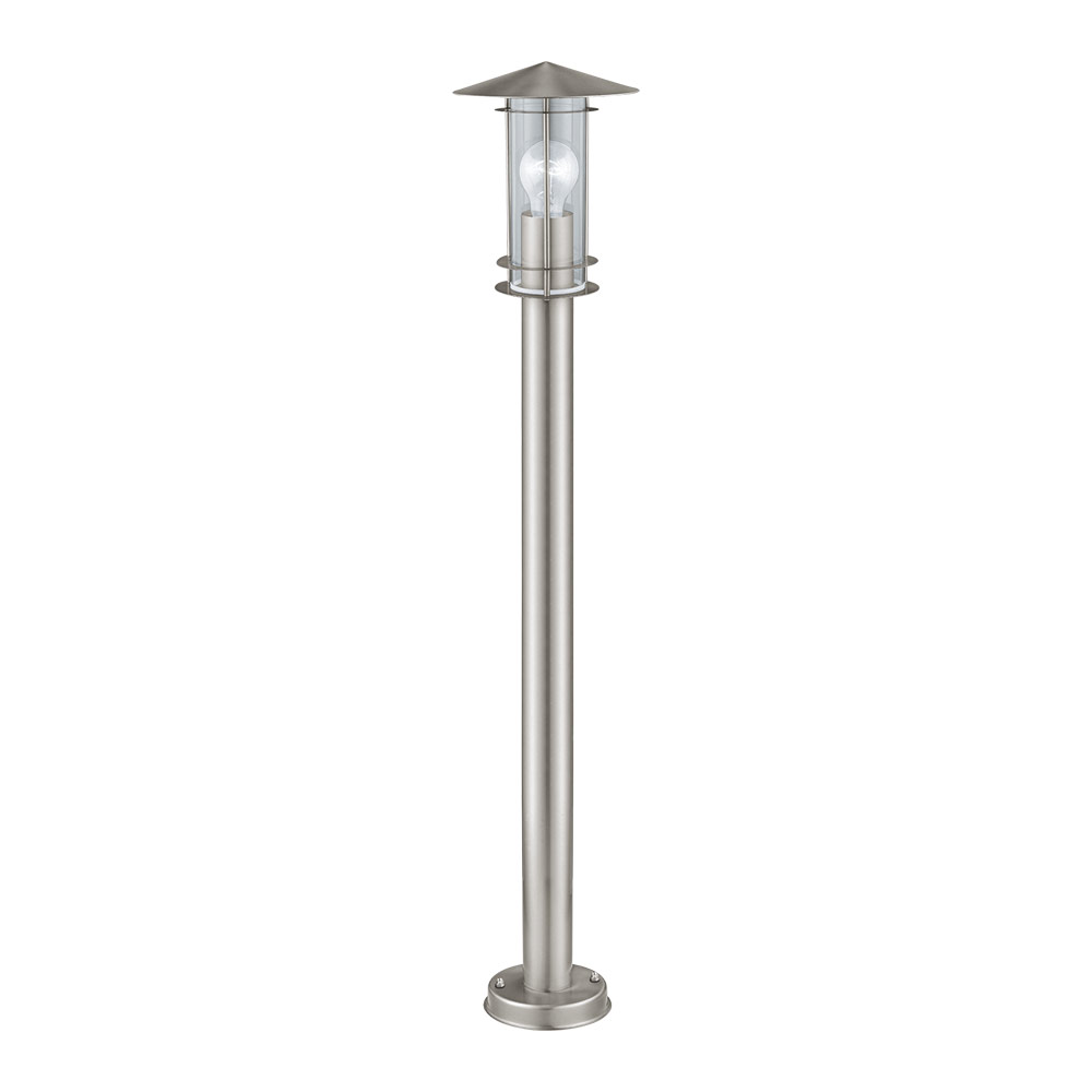 Висока градинска лампа в цвят инокс, с прозрачно стъкло