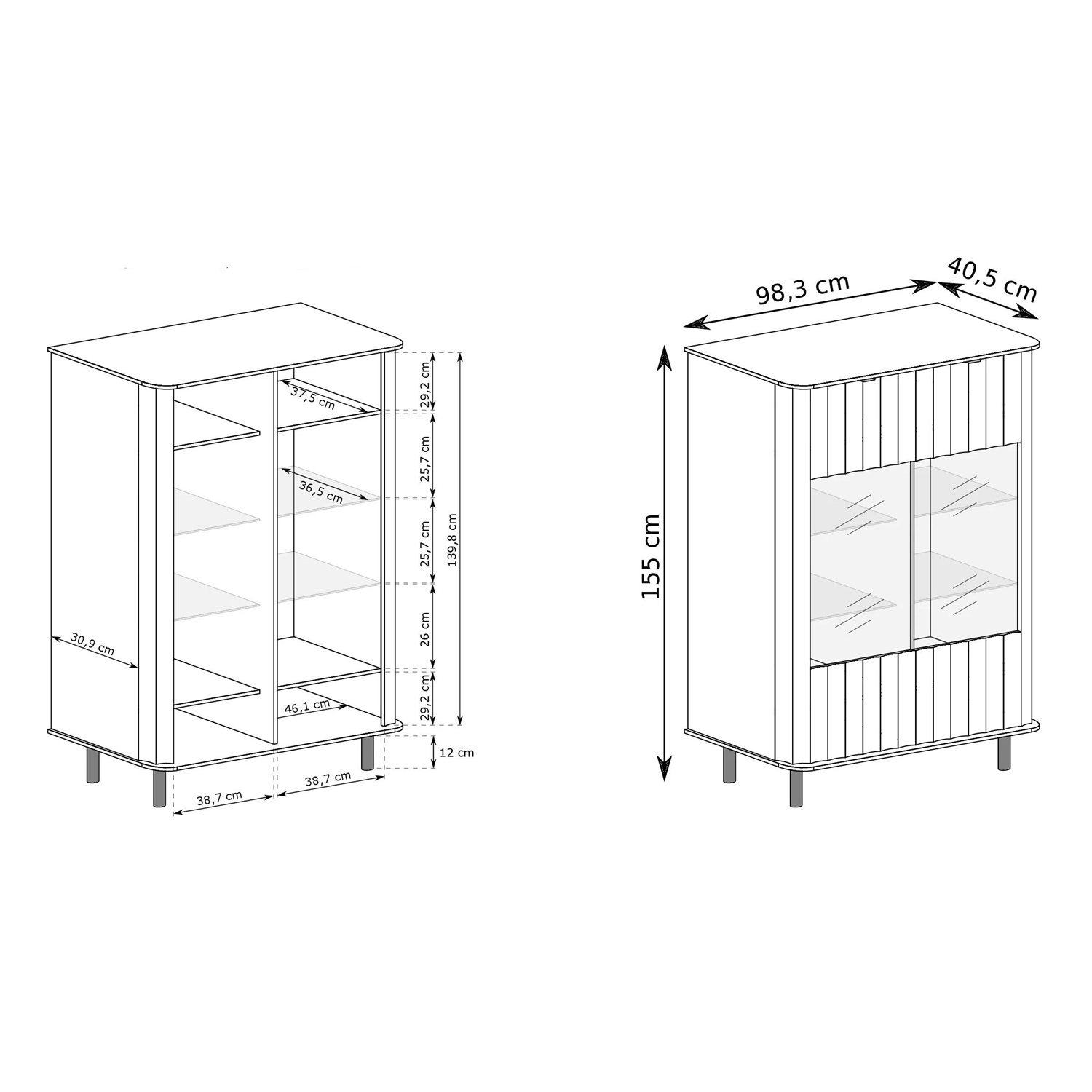 - Размери: 98,3 х 40,5 х 155 см