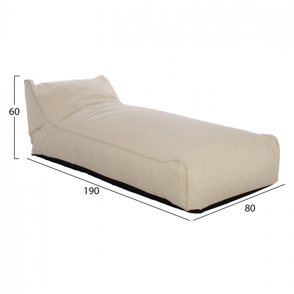 Изработен е от устойчив на влага и високи температури плат с UV защита, а пълнежът е от полистиренови гранули, което гарантира, че пуфът няма да потъне.