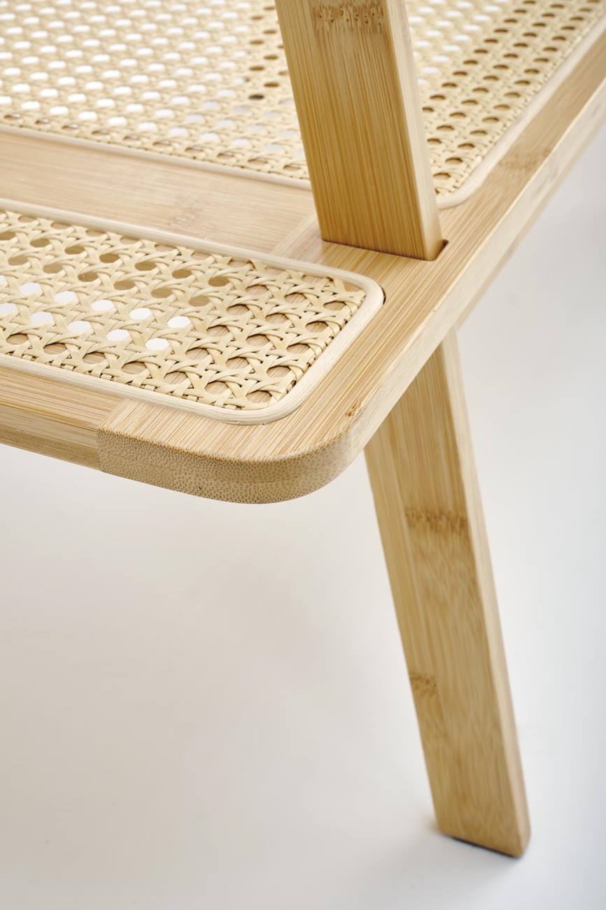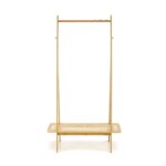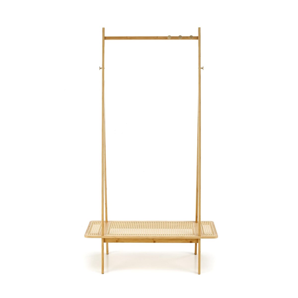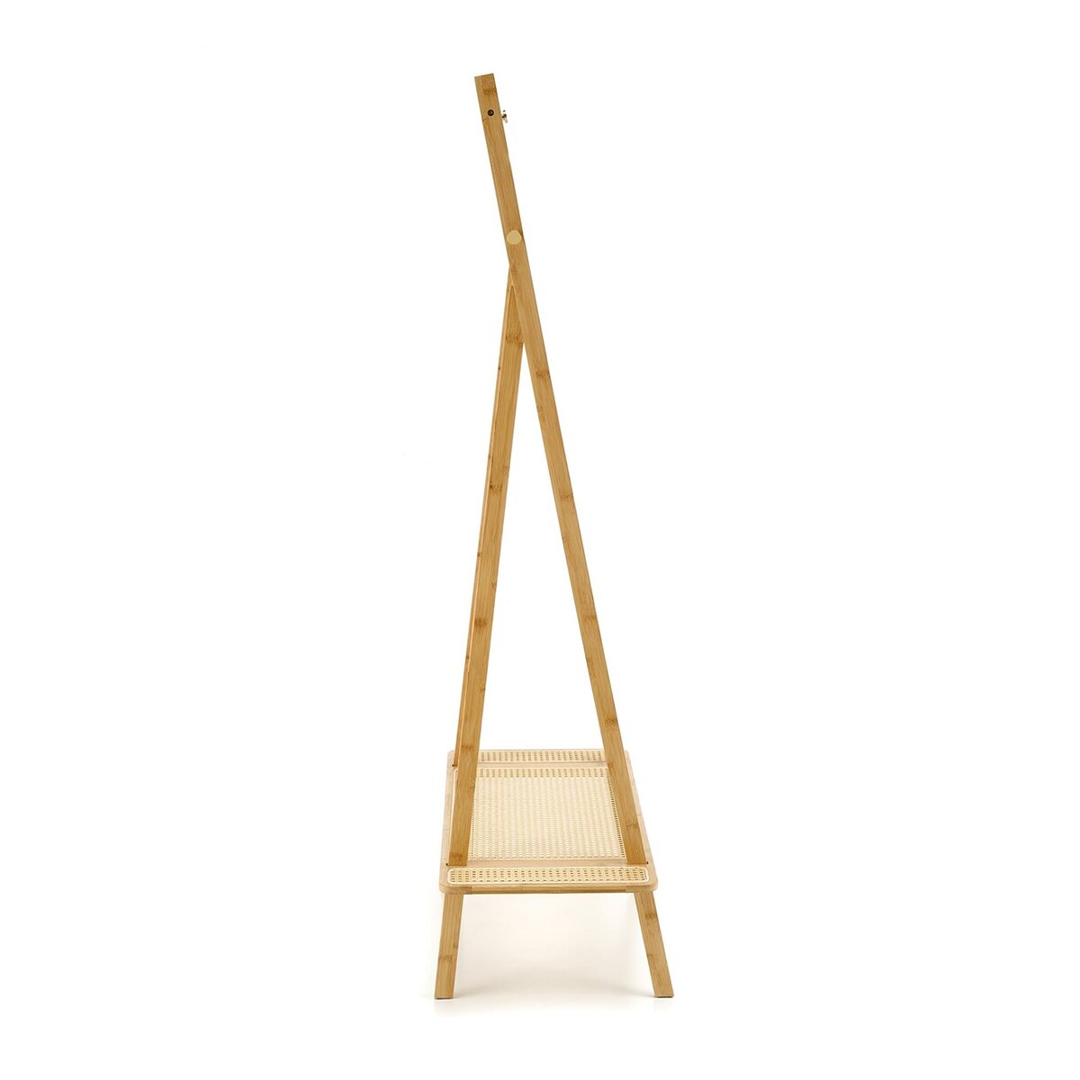 Свободностояща закачалка за дрехи от масивно дърво и естествен ратан.