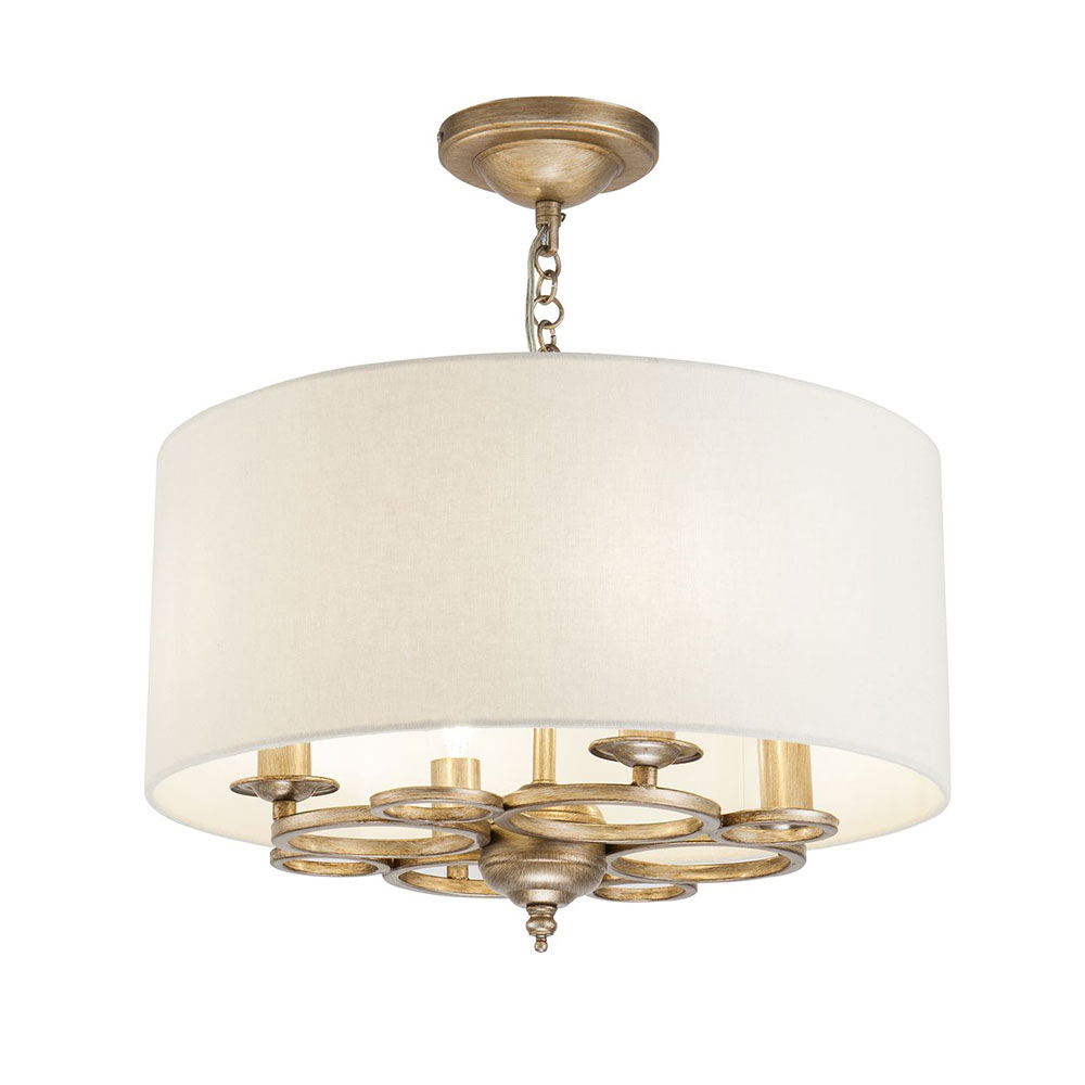 Златист пендел със състарена визия, изработен от метал с PVC шапка, покрита с текстил в цвят крем Maytoni, серия Anna.